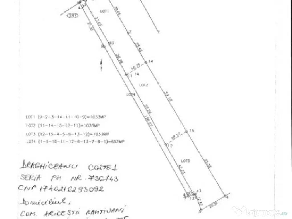 Blitz ofera spre vanzare teren intravilan 1033 mp cu cota servitute.Terenul este partea din miloc dintr-o parcela impartita in trei parti egale cu drum de servitute de 4 ml latime pentru toate cele tri parti rezultate.Celelalte doua parcele sunt disponibile pentru vanzare.La hotar sunt toate utilitatile Cod ofertă / ID BLITZ: P163785 Id intern: P163785