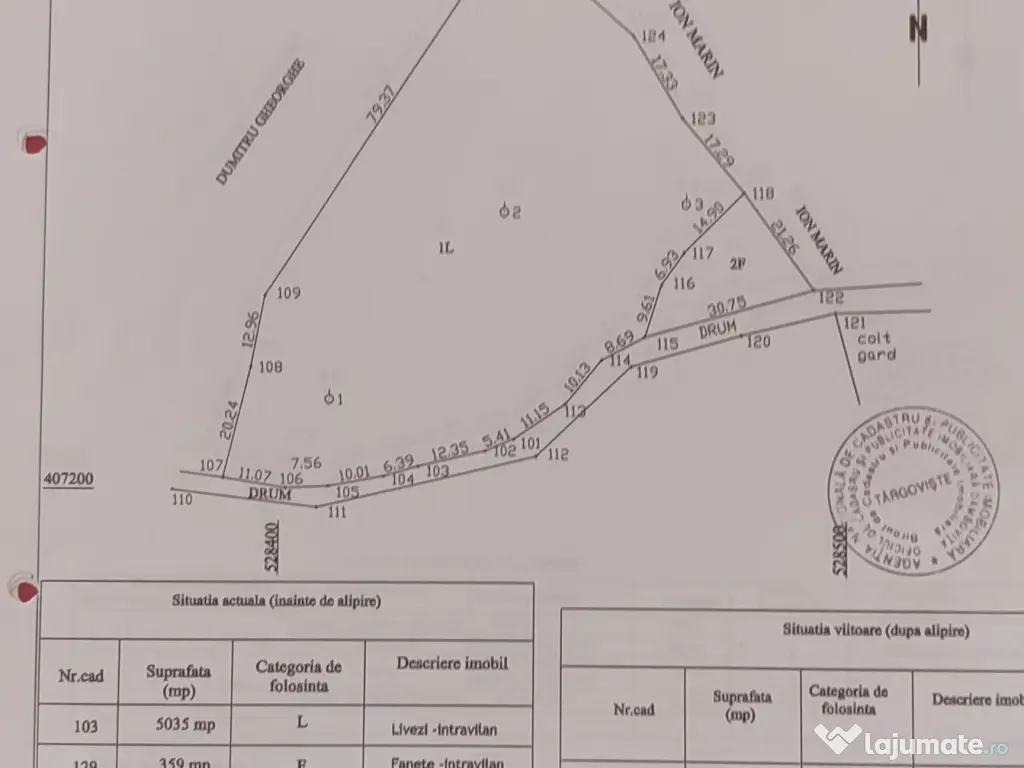 5394 mp în intravilan, fâneață și livadă cu mulți pomi fructiferi (nuci, pruni, cireși-mai multe soiuri) și pădure fag în zona de deal-munte (com Râu Alb, sat Râu Alb de Sus) a jud. Dâmbovița, sub munții Leaota. Apă și curent la 30m de hotar, pe drumul de acces. Situat în poziție deosebită, la limita dintre Valea Ialomiței și valea Damboviței (drum asfaltat din Valea Ialomiței prin Runcu sau drum asfaltat din valea Dâmboviței prin Voinești-Gura Bărbulețu-Râu Alb). Preț: 8E/mp.