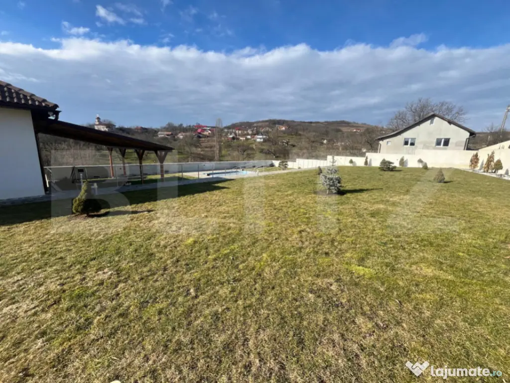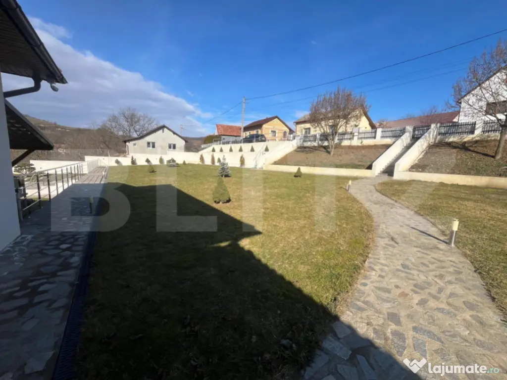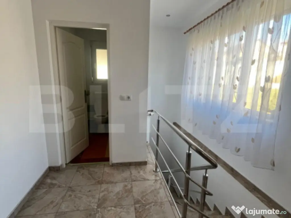 ???? Tihnă, spațiu și bucuria de a trăi: O proprietate de excepție, gata să-și primească noii proprietari ! Vă invităm să descoperiți nu doar o casă, ci un refugiu unde timpul pare să curgă mai lent. Situată în pitorescul sat Feleac, la mai puțin de 25 km de Bistrița și Beclean, această proprietate construită în 2015 a fost gândită ca o oază de liniște pentru cei care vor să lase în urmă agitația urbană fără a renunța la confortul modern. ???? Un domeniu al tău, între grădini și cer liber Cu un teren generos de 4.400 mp, proprietatea te întâmpină cu o curte terasată inteligent, oferindu-ți posibilitatea de a te bucura de fiecare metru pătrat. Grădina de 2.800 mp și arbuștii ornamentali creează un decor viu, în timp ce calea de acces pietruită și parcarea pavată adaugă o notă de eleganță și ordine. Zile de vară perfecte: Imaginează-ți diminețile pe terasa scăldată în soare și după-amiezile la piscină, urmate de o cină pregătită în zona de barbeque pe terasa laterală. ???? Interiorul: Unde confortul întâlnește funcționalitatea Cei 164 mp de la parter sunt compartimentați cu o atenție rară la detalii: Zona de odihnă: 4 dormitoare primitoare, dintre care două dispun de baie proprie, oferind fiecărui membru al familiei intimitatea dorită. Inima casei: O bucătărie cu cămară proprie și o baie principală dotată atât cu duș, cât și cu cadă, pentru momentele tale de răsfăț. Căldura adevărată: Pe lângă centrala eficientă, hornul central găzduiește o sobă pe lemne și curent care distribuie aer cald, creând acea atmosferă inegalabilă de "acasă" în serile de iarnă. ????️ Un subsol impresionant (164 mp) – Spațiu pentru orice pasiune Subsolul amenajat pe toată suprafața casei este un atu major, fiind mult mai mult decât un simplu spațiu de depozitare: Tehnic și util: Cameră tehnică (Centrală Vaillant 30 kW, boiler), spălătorie si baie. Creativitate: O cameră dedicată pentru atelier, plus spații vaste de depozitare pentru toate nevoile familiei. ✨ Facilități care fac diferența Piscina: Sistem de recirculare activ (cu posibilitate facilă de a instala încălzire). Stare: Casă "la cheie", finisată cu bun gust și materiale de calitate. Locație: Sat Feleac – locul unde liniștea este la ea acasă. Această proprietate este mai mult decât o sumă de dotări; este promisiunea unei vieți tihnite. Cod ofertă / ID BLITZ: P164094 Id intern: P164094 Număr Băi: 5 Nr. locuri parcare: 3 Curent Apă Canalizare Gaz
