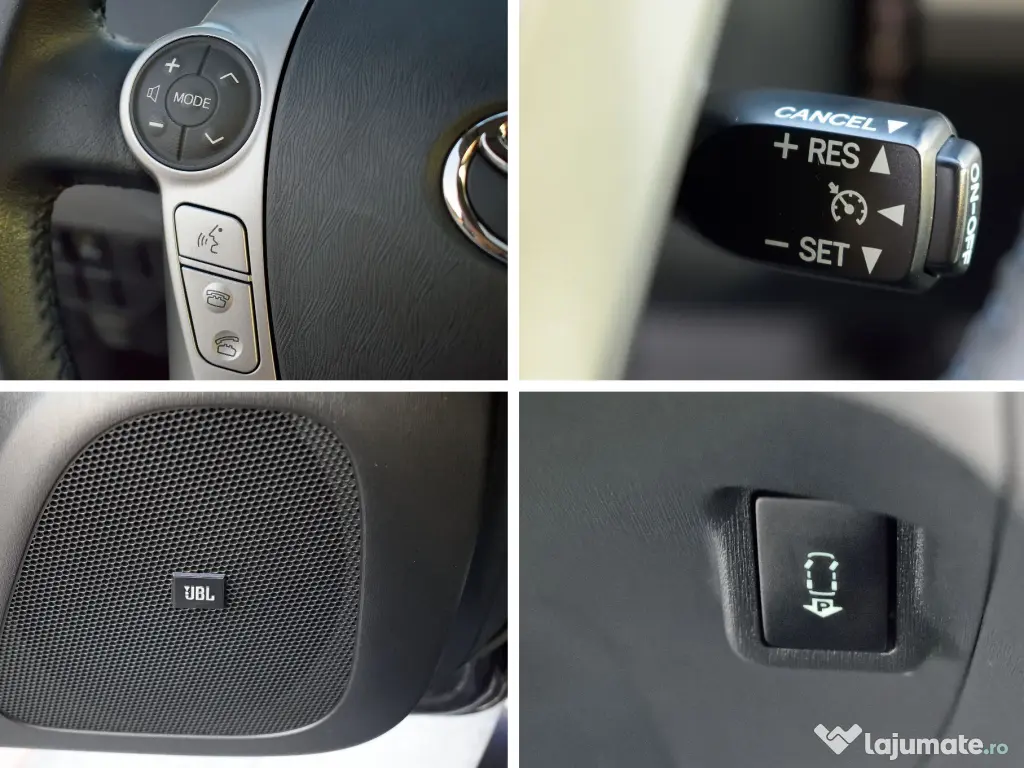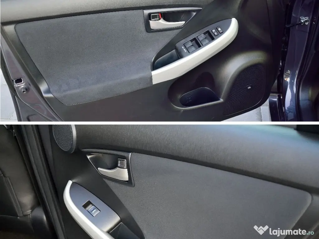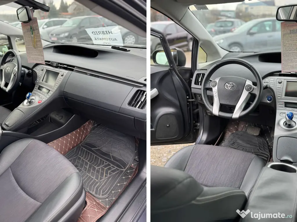 Toyota Prius Gen 3, hibrid, benzina+electric, putere 137 CP, masina personala, NU a fost folosita niciodata ca taxi bolt uber. Dotari: - Se incarca bateria hibrid din mers, are franare regenerativa - Cutie de viteze CVT (automata fara sa se simta schimbul de trepte de viteza) - 2 chei - HUD (head-up display - proiecteaza pe parbriz kilometraj, directia de pe gps, etc) - Faruri LED, lumina de zi automata tot LED (mai multe moduri), faruri de ceata halogen - Spalator de faruri - Comenzi volan cu holograma la atingere - Comenzi vocale - Parcheaza singura la atingerea unui buton - Tempomat - Aer conditionat automat sau manual pe 3 zone - Keyless Go (se deschide la atingerea clantei portierei) - Harta Ro si Europa, gps, display touch - Cd player, radio FM, DAB, USB stick, Bluetooth (5 telefoane) - Handsfree pentru telefon - Sistem audio de la JBL cu surround (10 boxe si tweetere) - Senzori de parcare si camera de marsarier - Senzori de ploaie - ABS, airbaguri si alte detalii de siguranta - Prize de 12 V - Parasolare tip plasa pentru geamurile spate (protejeaza si de insecte) - Paravânt (aparatori de ploaie si curent la toate geamurile) - Aparatoare ploaie pentru oglinzile exterioare - Anvelope Continental cu tot cu jante originale de schimb (iarna vara). Permite mai multe stiluri de condus (se poate schimba din buton): 1- Normal (acesta il folosesc eu cel mai des), 2- Eco (are un delay la acceleratie si nu permite sa consume mult daca apesi acceleratia brusc), 3- Power (137 CP - se infige foarte bine, cu bagaje si 4 pasageri depasesc pe deal in sus fara probleme), 4-Electric (de la 62km h se decupleaza automat si intra pe normal) Consumul de combustibil - urban: 3.7-3.8 L/100 km Consumul de combustibil - extra-urban: 3.9-4 L/100 km Consumul de combustibil - mixt: 3.9-4 L/100 km Consumul depinde mult de felul cum este condusa. Cel mai mare consum scos a fost 4.6-4.8L/100km pe autostrada cu viteza mare. Acceleraţie 0 - 100 km h: 10.4 sec Viteza maximă: 180 km/h Emisii CO2: 89-92 g/km Tipul de combustibil: Benzină Raport greutate putere: 10.1 kg/CP, 99.3 CP/tonă Raport greutate Cuplu: 9.6 kg/Nm, 103.6 Nm/tonă Prezinta mici zgarieturi de la cum au deschis altii portiera in parcarea de la magazine. Ofer mai multe poze in privat, sau detalii telefonic.