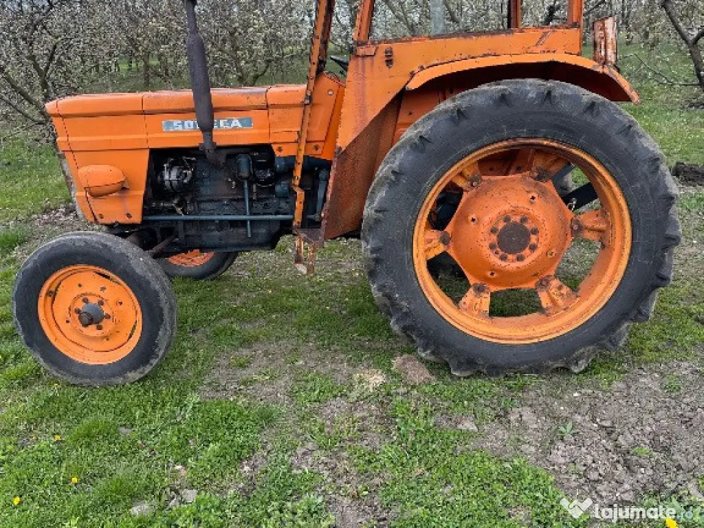 Vând tractor Fiat 550 55 CP adus cutie cu 2 manete și ambreiaj pe priză pornire la cheie instalație electrică bord funcțional 2 ieșiri hidraulice tiranti noi transport la nevoie preț 5000 euro