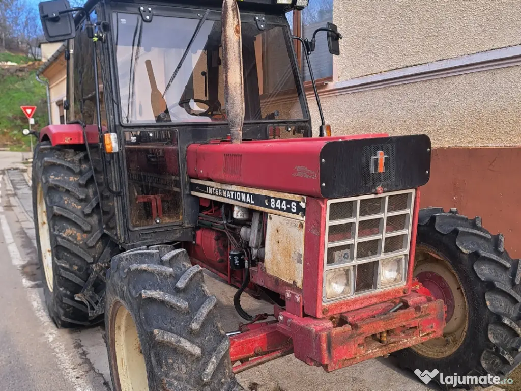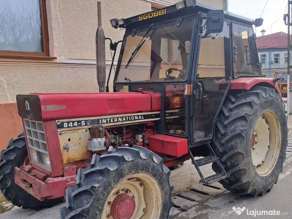 Vând tractor Internațional 844S, 4x4,motor 4 cilindri 85CP, vopsea originala, cauciucuri noi, distribuitor cu 3 iesiri hidraulice, compresor aer cu instalatie franare remorca, priza de putere cu 540 si 1000 de turații sincronizata pentru remorca cu tracțiune, în stare perfecta de funcționare, import Italia , acte pentru înmatriculare. 9600 euro negociabil.
