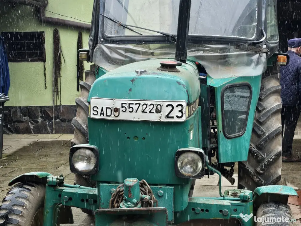 Vând tractor John Deere de 55 CP, motor în 3 cilindri, în stare bună de funcționare. Are 4 viteze și inversor de sens, ceea ce îl face ușor de manevrat la lucru.