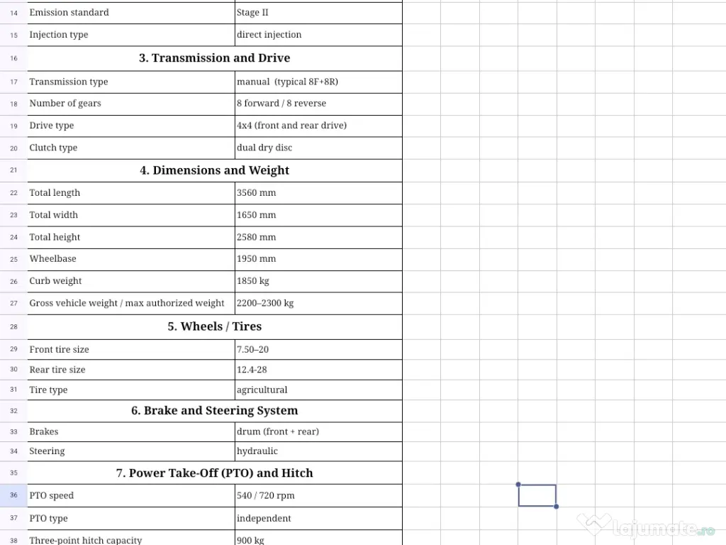 Tractoru are cabina închisă, aer condiționat, servodirectie etc. o sa atașez poza cu datele tehnice ale tractorului.