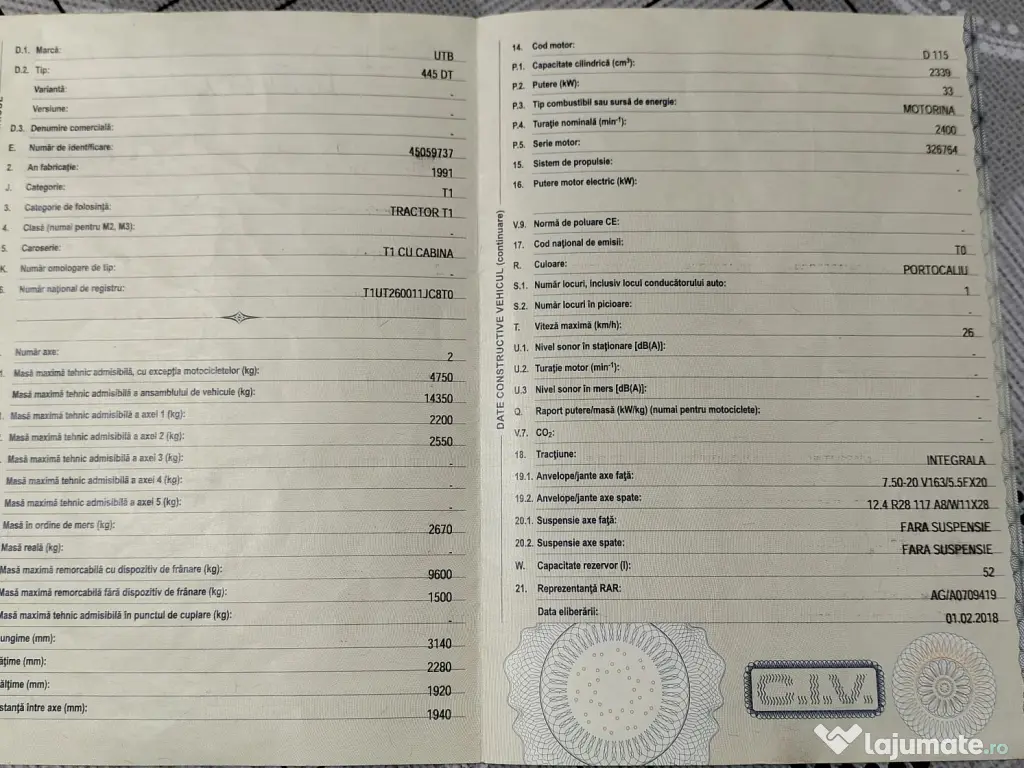 De vânzare Tractor U445 DTC tracțiune centrală, motor 3 cilindri fără gaze, in stare foarte bună de funcționare, anvelope 90%, ulei motor+transmisie +filtre schimbate, servodirecție pe danfoos originală NU ADAPTĂRI, iesiri hidraulice, fără jocuri, totul este funcțional. Are itp+asigurare, fiscal la zi. PREȚ NEGOCIABIL !! DETALII DOAR LA TELEFON:
