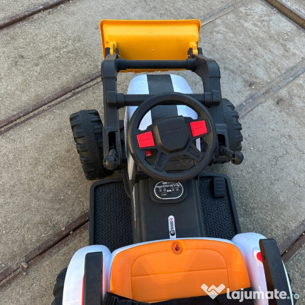 Benficiati de GARANTIE 24 Luni Transport GRATUIT Pentru comenzi si info contactati-ne 0729189471 Tractoras electric cu remorca, incarcator frontal si cupa spate, Kinderauto BRJ1588, 2x 35W, 12V Telecomandă pentru control parental Controlează tractorul de la distanță pentru a oferi siguranță deplină copilului tău. Accesorii incluse – Cu remorcă, cupă încărcător frontal și braț încărcător spate, micuțul tău poate simula activitățile fermierilor adevărați! Putere și performanță – Echipat cu 2 motoare electrice de 35W fiecare (70W total) și baterie de 12V 7Ah pentru o experiență de lungă durată. Confort maxim – Pornire și oprire lentă pentru un plus de siguranță și o experiență plăcută la fiecare pornire sau oprire. Sistem multimedia integrat – Music player cu port USB și Bluetooth pentru ca micuțul să asculte melodiile preferate în timpul călătoriilor. Siguranță pe primul loc – Dotat cu centură de siguranță, sistem de iluminat cu LED și 3 nivele de viteză reglabile din telecomandă. Ușor de utilizat – Comutator pentru schimbarea sensului de mers, volan cu butoane sonore și indicator pentru nivelul bateriei. Tractorasul se mai poate ghida manual de catre copil. Specificații impresionante: Recomandat pentru copii cu vârsta între 36-60 luni. Dimensiuni (cu cupă și remorcă): 182 x 58 x 58 cm. Greutate total admisă: 44,4 kg. Puteti cumpara acest produs in RATE, fara dobanda, cu CARD de cumparaturi de la banci partenere precum: Raiffeisen / Star BT / BCR / BRD Finance / Alpha Bank /First Bank. Pentru comenzi si info contactati-ne 0729189471 SAU IN RATE CU DOBANDA PRIN TBI PAY.