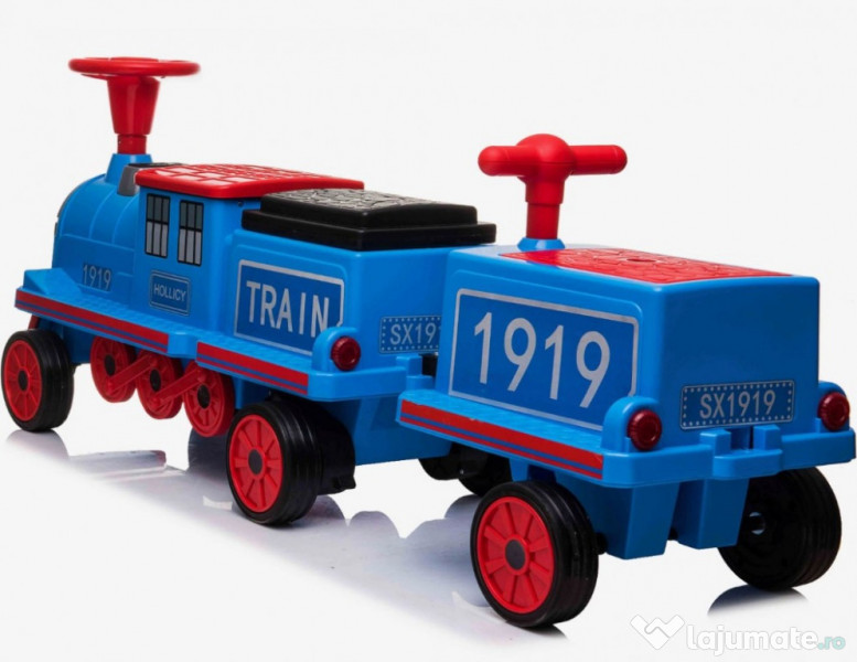 Benficiati de GARANTIE 24 Luni Transport GRATUIT Pentru comenzi si info contactati-ne 0729189471 Trenulet electric cu 2 vagone pt. 4 copii SX1919 4x 45W 12V 14ah Trenulet electric SX1919 echipata CU ROTI MOI 4 Motoare electrice de putere 45W Echipata cu BATERIE 12V 14Ah Baterie detasabila Efecte sonere autentice unui trenulet Locomotiva recomandata pentru 2 copii 2 Vagone detasabile, confortabile pentru 2 copii Comutatore pentru schimbare directie mers inainte/inapoi Music player echipat cu Bluetooth, port USB si CARD minSD Pornire/Oprire din Buton Faruri cu LED Compartiment depozitare Roti din cauciuc EVA Pornire LENTA pentru confortul copilului Oprire LENTA pentru confortul copilului Produsul include INCARCATOR Trenuletul se ghideaza manual de catre copil Volan echipat cu butoan pentru activare clanxon Indicator volataj baterie Sistem de iluminat Conexiune Mp3 prin cablu jack Treapta de marsarier Greutate proprie 17.9 Kg Greutate total admisa 77.9 Kg Produs recomanda pentru copil 36-60 Luni Dimensiuni locomotiva 89 x 40 x 54 cm Dimensiuni vagon 56.5 x 37 x 49 cm Puteti cumpara acest produs in RATE, fara dobanda, cu CARD de cumparaturi de la banci partenere precum: Raiffeisen / Star BT / BCR / BRD Finance / Alpha Bank /First Bank. Pentru comenzi si info contactati-ne 0729189471 SAU IN RATE CU DOBANDA PRIN TBI PAY.