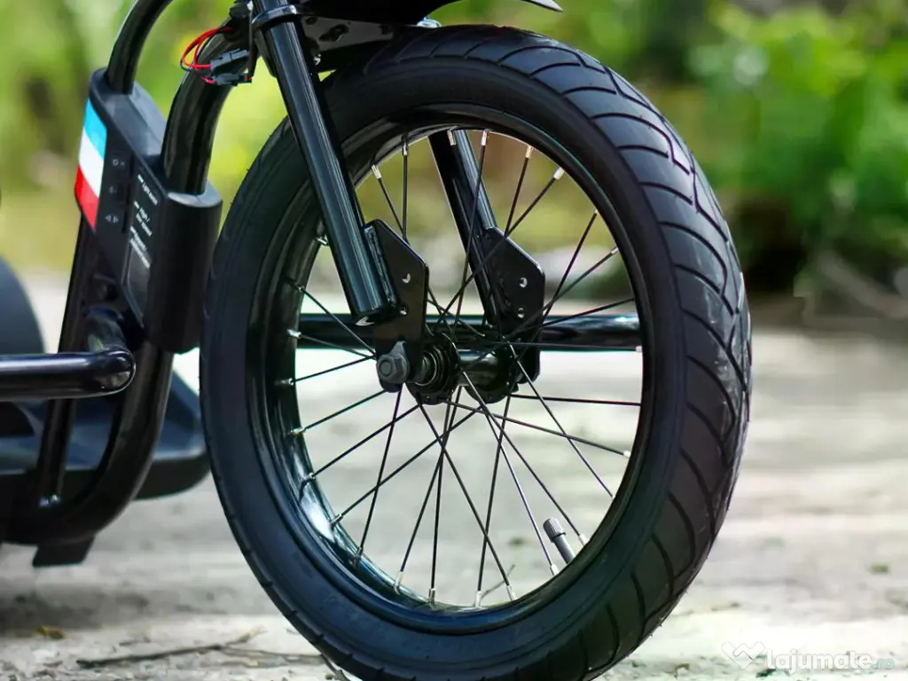 Motocicleta are 2 motoare mari pe spate de putere 250W si 25000 Rpm