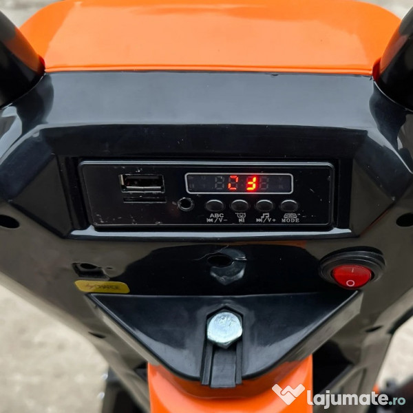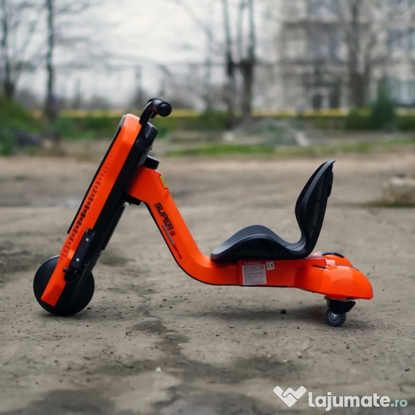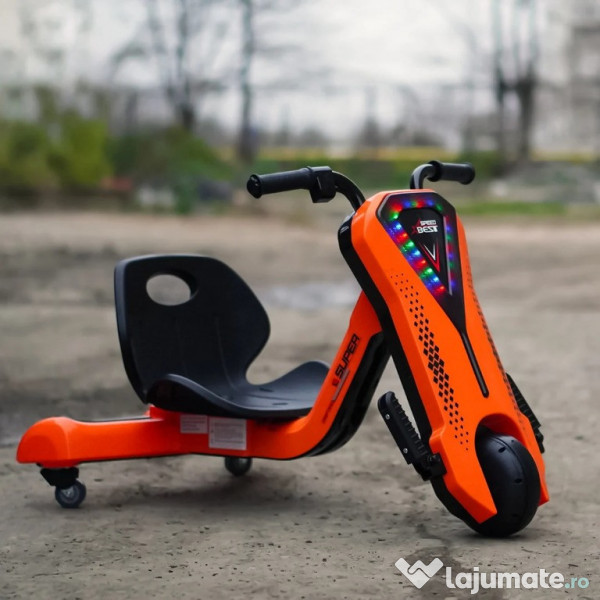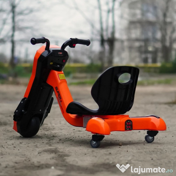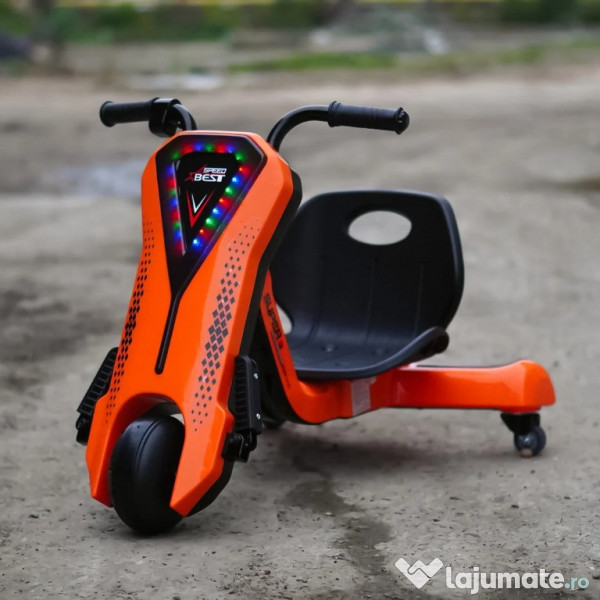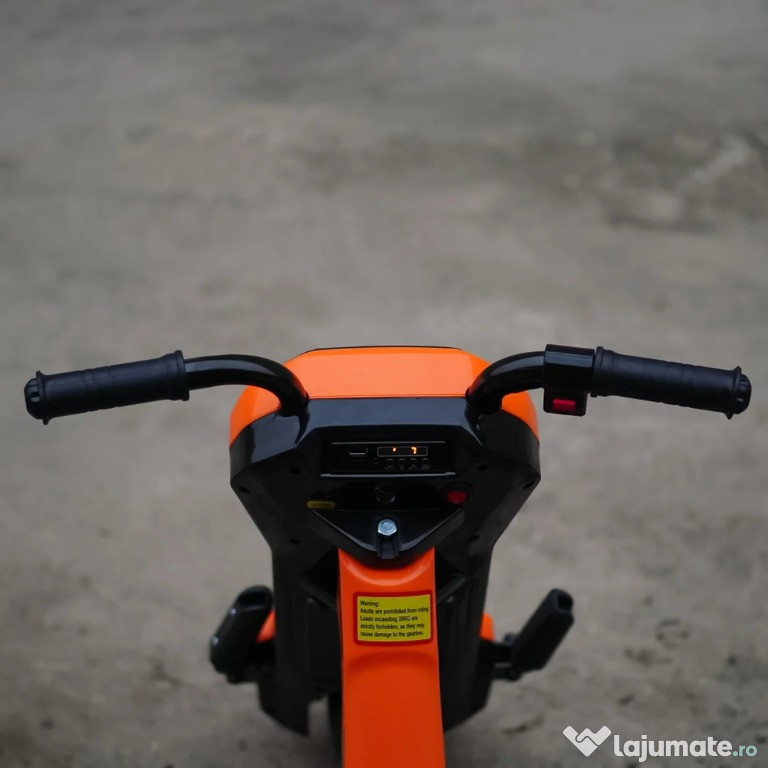 Benficiati de GARANTIE 24 Luni Transport GRATUIT Pentru comenzi si info contactati-ne 0729189471 Tricicleta electrica pentru copii Kinderauto Slider 360 12V 1 motor electrice de putere 45W, la tensiune 12V Sistem de alimentare 12V, actionat din buton Echipat cu baterie reincarcabila 12V 4.5 Ah Produs stabil, fiind echipat cu 3 roti Roti standard din plastic cu banda de cauciuc pe mijloc Music player MP3 cu multiple functii Control volum, indicator voltaj baterie, story teller, Efectele sonore muzicale Acceleratie actionata din butonul pozitionat pe coarne, la mana dreapta Suport picioare Incarcator 12V inclus in pachet Produs recomandat pentru 1 copil Greutate proprie 8 kg Greutate total admisa 38 de kg Produs recomandat pentru copii 4-7 ani Dimensiunile produsului montat 84 x 56 x 67 cm Puteti cumpara acest produs in RATE, fara dobanda, cu CARD de cumparaturi de la banci partenere precum: Raiffeisen / Star BT / BCR / BRD Finance / Alpha Bank /First Bank. Pentru comenzi si info contactati-ne 0729189471 SAU IN RATE CU DOBANDA PRIN TBI PAY.