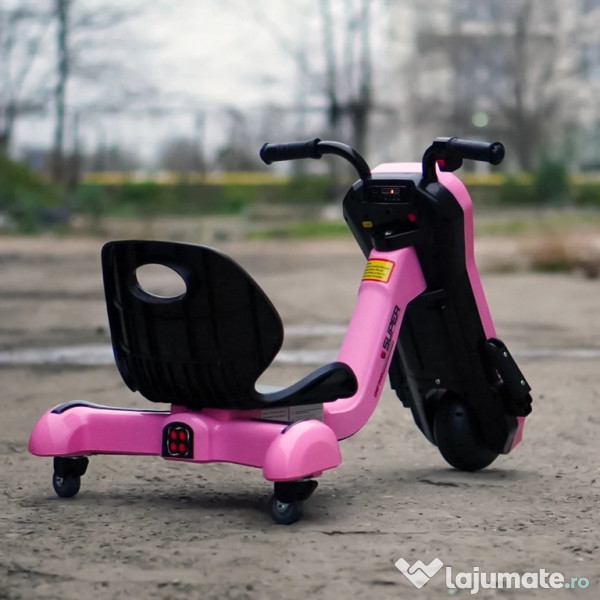 Benficiati de GARANTIE 24 Luni Transport GRATUIT Pentru comenzi si info contactati-ne 0729189471 Tricicleta electrica pentru copii Kinderauto Slider 360 12V 1 motor electrice de putere 45W, la tensiune 12V Sistem de alimentare 12V, actionat din buton Echipat cu baterie reincarcabila 12V 4.5 Ah Produs stabil, fiind echipat cu 3 roti Roti standard din plastic cu banda de cauciuc pe mijloc Music player MP3 cu multiple functii Control volum, indicator voltaj baterie, story teller, Efectele sonore muzicale Acceleratie actionata din butonul pozitionat pe coarne, la mana dreapta Suport picioare Incarcator 12V inclus in pachet Produs recomandat pentru 1 copil Greutate proprie 8 kg Greutate total admisa 38 de kg Produs recomandat pentru copii 4-7 ani Dimensiunile produsului montat 84 x 56 x 67 cm Puteti cumpara acest produs in RATE, fara dobanda, cu CARD de cumparaturi de la banci partenere precum: Raiffeisen / Star BT / BCR / BRD Finance / Alpha Bank /First Bank. Pentru comenzi si info contactati-ne 0729189471 SAU IN RATE CU DOBANDA PRIN TBI PAY.