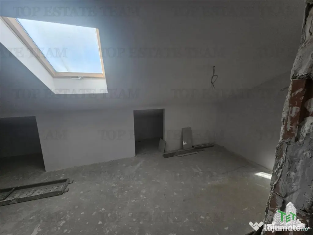 Compartimentare: Hol, living cu iesire terasa neacoperita, bucatarie inchisa, baie; hol, 1 dormitor spatios 16.6mp dressing, 1 dormitor cu baie balcon la etaj; 2 incaperi la mansarda.