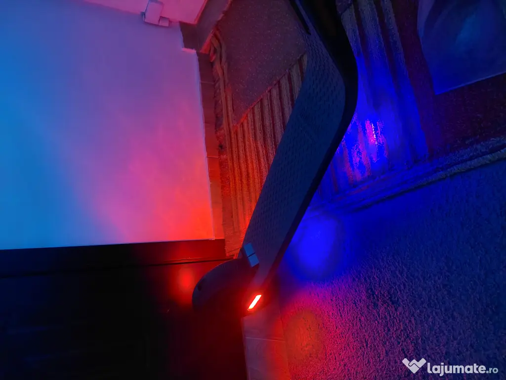 - Sistem de iluminare Premium: Far LED puternic pentru vizibilitate nocturnă și lumini ambientale sub platformă (RGB), care pot fi personalizate din aplicație. Acestea oferă un aspect modern, dar te fac și mult mai vizibil în trafic.