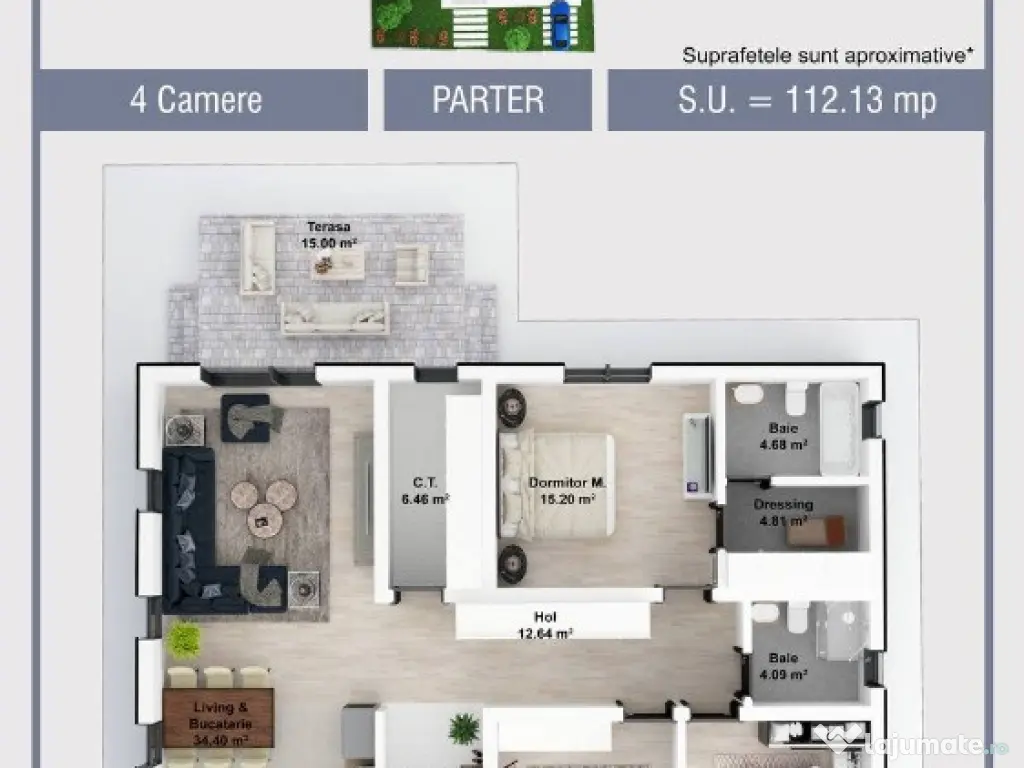 Ultimele 6 case disponibile în Ansamblul 8 Residence Balotești! După vânzarea a peste 80 de unități, au mai rămas doar 6 case individuale disponibile – nu rata ocazia să te muți într-un ansamblu complet și bine organizat, în inima Baloteștiului! ✔️ Casă pe parter – 4 camere ✔️ Suprafață utilă: 115 mp ✔️ Teren: 510 mp ✔️ Finisaje incluse, cu posibilitatea de personalizare Compartimentare inteligentă: • Vestibul de intrare generos • Living spațios open space cu bucătăria • Cameră tehnică dotată cu toate racordurile • Hol larg, cu acces către cele 3 dormitoare • 2 băi: una principală + una pentru dormitorul matrimonial • Cameră dedicată pentru dressing Alte facilități: • Casă complet împrejmuită cu gard • Locuri de parcare pentru 2 mașini • Finisaje la alegere (în limita bugetului inclus) Despre Ansamblu: • Drumuri de acces late și asfaltate • Spațiu de joacă pentru copii • Zonă verde și spațiu de relaxare • Comunitate formată deja – peste 80 de familii mutate! Locație: Balotești, Ilfov – zonă în dezvoltare, aproape de DN1, Aeroport Otopeni, Therme și centre comerciale. Contactează-ne acum pentru vizionare! 0753 508 888 PRETUL NU INCLUDE TVA Comision cumpărător: 0% Posibilitate parcare: Da Nr. locuri parcare: 2 Curent Apă Canalizare Gaz Încălzire