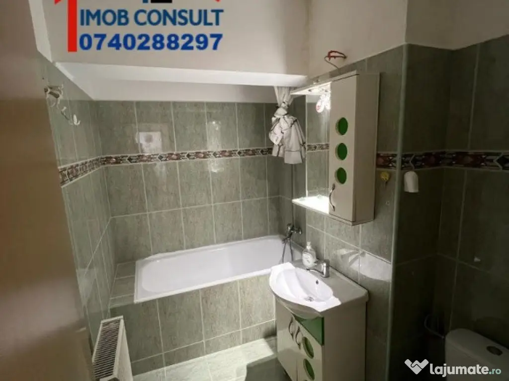 IMOB CONSULT Bacau iti propune spre inchiriere un apartament cu 2 camere, in zona ultracentrala, aproape de punctele principale de interes ale orasului: magazine, parc, mijloace de transport in comun, scoli, gradinite, licee si farmacii. Este un apartament foarte spatios, alcatuit din dormitor cu balcon, hol, living, baie si bucatarie, situat la etajul 8 intr-un bloc cu 10 etaje. Avand compartimentarea aceasta si cu ferestre de calitate acest apartament este unul foarte calduros si ecomonic din punct de vedere al utilitatilor. In pretul afisat este inclus contractul inregistrat la ANAF. Va asteptam la vizionare! Ne puteti contacta la numerele de telefon:0740 288 297 Corina si 0758262533 Lacramioara sau ne gasiti la sediul agentiei noastre, IMOB CONSULT Bacau situat pe strada Banca Nationala, nr. 27, intersectia Neagoe Voda, langa Irish Pub. Confort: 1 Tip imobil: Bloc de apartamente