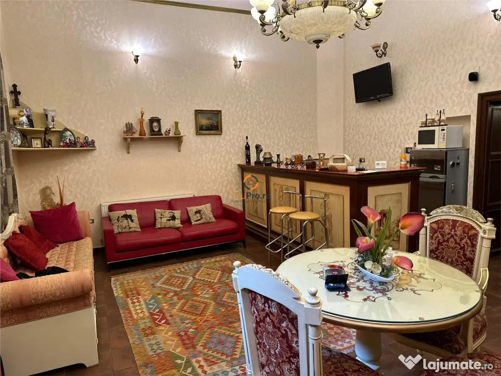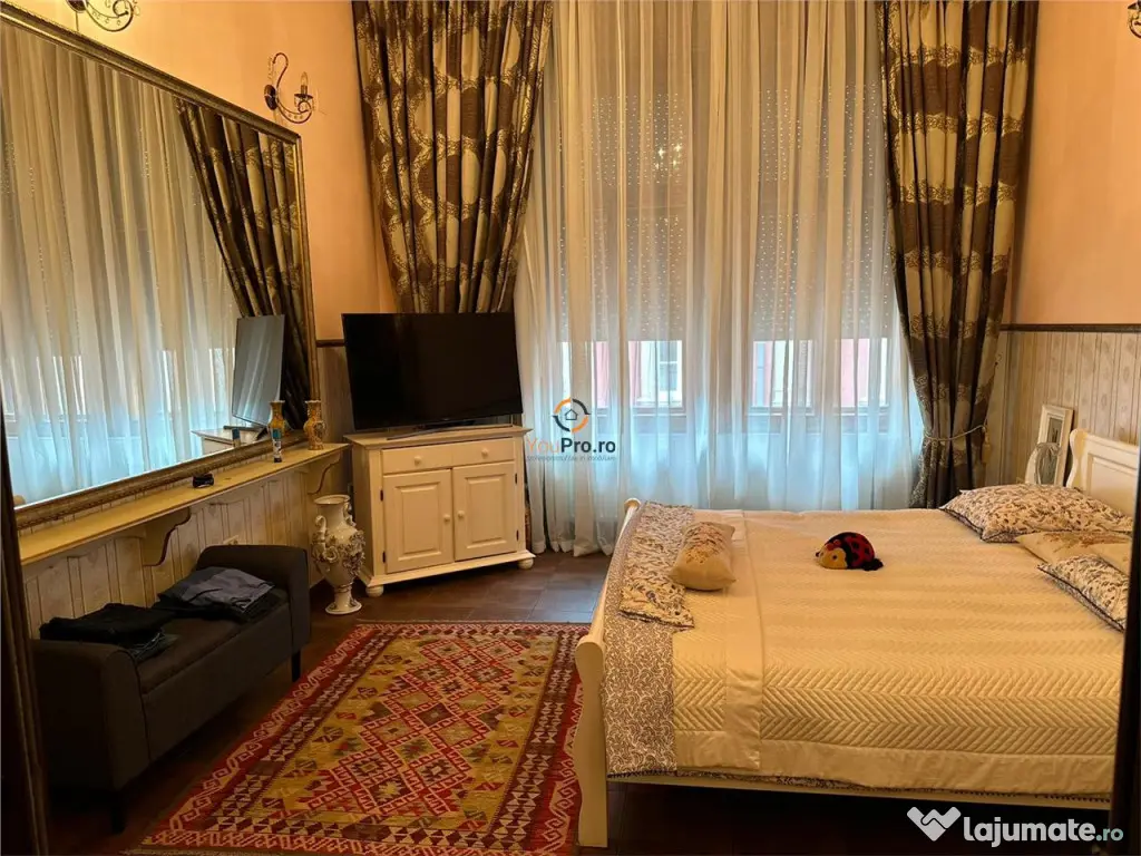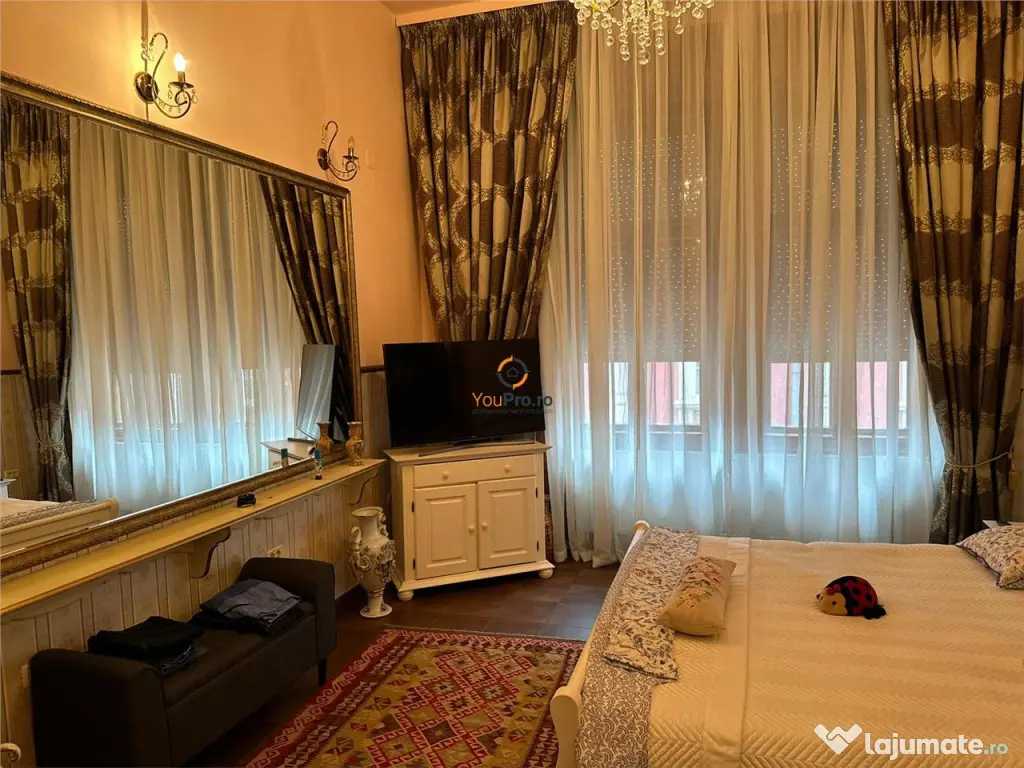 ULTRACENTRAL!!! YouPro.ro va ofera spre vanzare apartament cu 3 camere situat ultracentral, la etajul unui, al unui imobil de 3 nivele. Apartamentul se desfasoara pe o suprafata generoasa de 110 mp. Apartamentul dispune de centrala termica proprie.Este ideal atat pentru locuit in quot;buricul targuluiquot; cat si ca investitie. Se poate inchiria ulterior atat pe termen lung cat si in regim hotelier sau pentru birouri. Pretul solicitat de proprietar este de 270.000 euro negociabil. Confort: 1 Tip imobil: Bloc de apartamente Număr Băi: 2