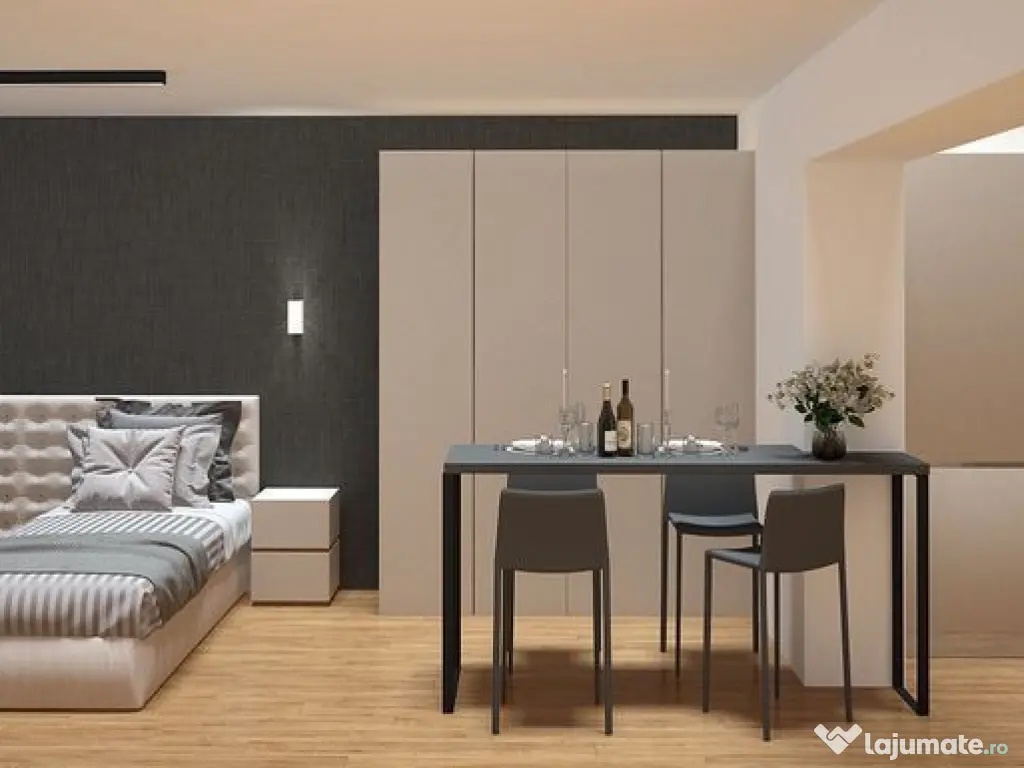 Unirii-Imobil S+P+Mz+9E+10Er+11Er: 51 apartamente (unitatile locative fiind pozitionate incepand de la mezanin și pana la etajul 11 inclusiv) impartite astfel: ● 23 apartamente cu 1 dormitor, ● 8 studiouri; ● 8 apartamente junior; ● 8 apartamente cu 2 dormitoare; ● etaj 10 – 3 unități cu 1 dormitor; ● etaj 11 – 1 unitate de tip penthouse. Suprafata construita S – etaj 11 = ̴5.095 mp Suprafata construita terase = ̴ 390 mp Suprafata totala imobil + terase = ̴ 5.483 mp Apartamentele cu finisaje de inalta calitate si design modern reprezinta locatia perfecta pentru cei care doresc sa locuiasca intr-o zona centrala, cu acces usor la transport public si servicii. Apartamentele pot fi inchiriate atat pe termen lung, dar si in regim de aparthotel, imobilul fiind dotat cu toate facilitatile necesare in acest sens, atat din punct de vedere tehnic si administrativ, dar si prin finisajele care ofera aspectul si atmosfera potrivita. spații comerciale amplasate la subsol si parter sunt: ● un restaurant (amplasat la parter și parțial subsol, avand o terasa spatioasa cu vedere la bulevard); ● SPA (amplasat la subsol). – spații comune, spatii tehnice, boxe, lobby acces, circulații, birouri (inclusiv birou administrație). Suprafaţă totală: 4175 m² An finalizare construcție: 1992 Stadiu construcţie: Finalizat Posibilitate parcare: Nu Tip imobil: Bloc de apartamente