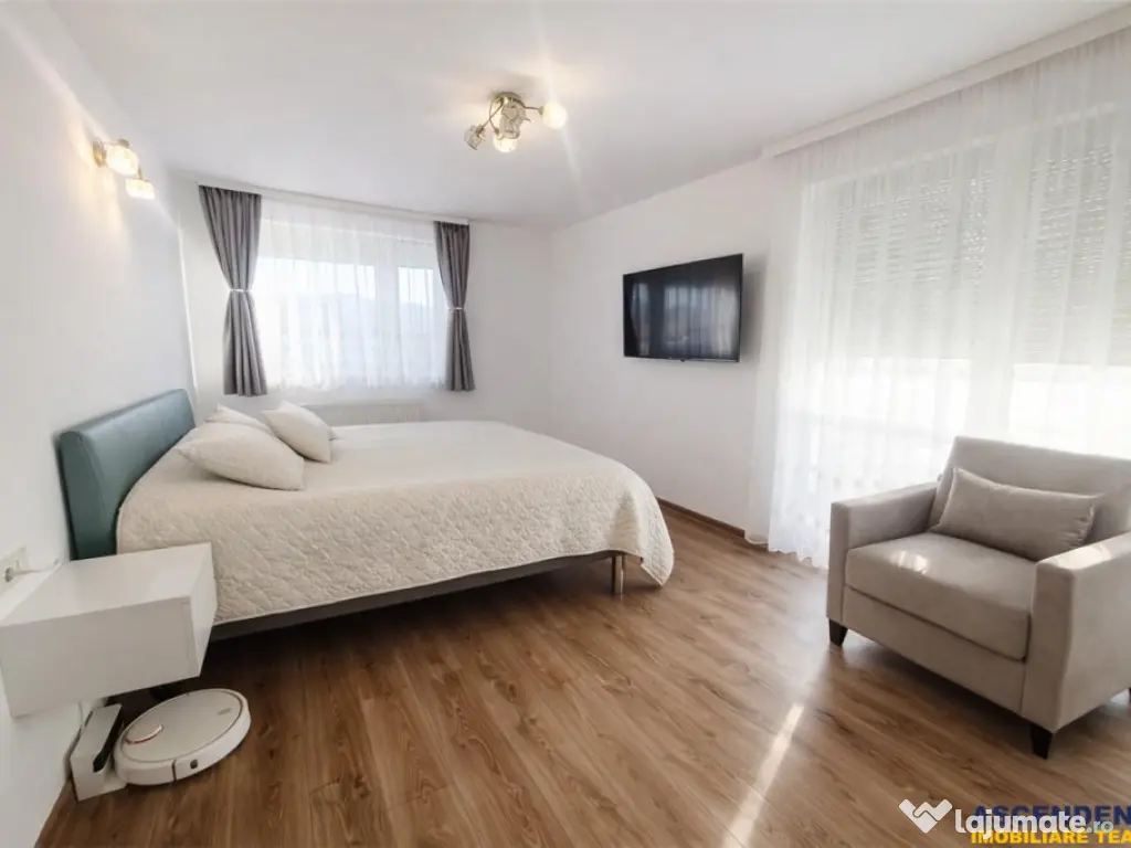 Comision cumparator 0% Ascendent Imobiliare Este onorata sa va prezinte o proprietate, care nu inseamna doar metri patrati. Inseamna lumina diminetii, linistea serii si sentimentul ca ai ajuns unde trebuie. Acest apartament de 100 mp situat in Complexul Urban Phenta, este renumit prin calitatea fnisajelor si renumele dobandit in timp. Te intampinam cu o atmosfera calda si primitoare, luminoasa si aerisita, cu spatii gandite pentru confort, nu doar pentru estetica, datorita compartimentarii decomandate si a ferestrelor generoase. LIVE din confortul casei tale https://my.matterport.com/show/?m=AW9ytiDHgG2 Livingul, inima casei, are iesire pe una dintre terase cu vedere deschisa catre Mall Coresi - un loc perfect pentru cafeaua de dimineata sau seri relaxante. Structura este decomandata, suprafata totala de 103 mp, iar configuratia casei: living camera de zi si dormitor matrimonial 2 bai 2 terase bucatarie inchisa dressing si debara hol generos echipat cu aer conditionat garaj subteran boxa Bucataria este complet echipata si functionala, cu plita, cuptor, hota, frigider, centrala proprie si zona de dinning amenajata pentru momentele petrecute in familie sau cu prietenii. Dormitorul matrimonial de 20 mp, este un adevarat refugiu: pat King Size, are acces pe terasa proprie, baie privata cu cada si bideu de 6 mp, dar si un dressing minunat de 8 mp amenajat elegant cu oglinda si bancheta de catifea, un spatiu creat pentru confort si utilitate practica. Camera de zi, amenajata cu birou, este ideala pentru work from home. Holul generos de 13 mp, dotat cu aer conditionat, ofera un plus de functionalitate si organizare. Bonus suplimentar - garaj subteran extrem de apreciat iarna, cand masina te asteapta mereu la cald si boxa ca spatiu pentru depozitare articole de sezon Locatia este un alt punct forte, la doar 3 minute distanta de Mall Coresi, cu acces rapid la supermarket uri(Mega Image), farmacii, saloane de beauty, restaurante, sala de fitness, parcuri de joaca, magazine de mobilier de top Mobexpert, Farmacia Tei, Decatlon etc Este mai mult decat o locuinta, este un stil de viata intr o comunitate vibranta si completa! O oportunitate excelenta pe segmentul investitional, imobilul fiind situat intr o zona apreciata si bine conectata. Va doresc o zi cu soare in suflet si va astept sa exploram impreuna proprietatea! Consilieri specializati pe oferta: doamna Gilda Georgescu Telefon/WhatsApp: 0722 807 623 domnul Nicu Pavel Telefon/WhatsApp: 0722 500 650 Detalii, fotografii suplimentare si alte variante similare exclusive: www.ascendentimobiliare.ro Confort: 1 sporit Tip imobil: Bloc de apartamente Număr Băi: 2 Comision cumpărător: 0% Posibilitate parcare: Da Nr. locuri parcare: 1
