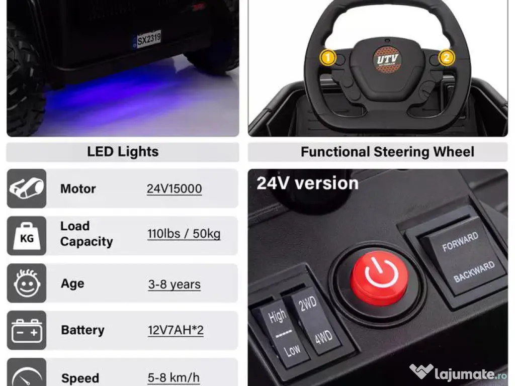 UTV electric pentru 2 copii Kinderauto BJSX2319 6x6 300W 24V