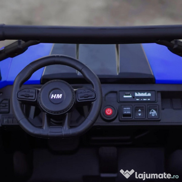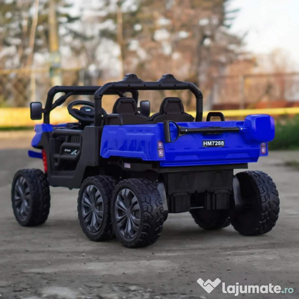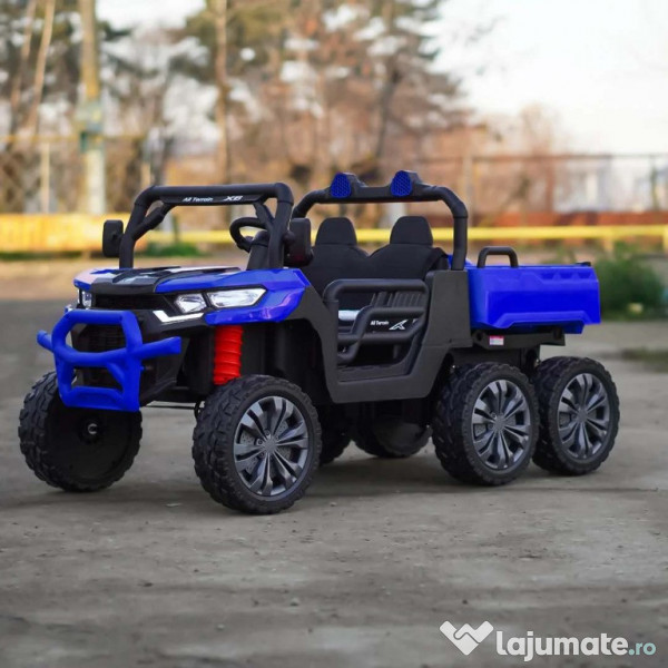Benficiati de GARANTIE 24 Luni Transport GRATUIT Pentru comenzi si info contactati-ne 0729189471 UTV electric pentru 2 copii Kinderauto X-Force 4x75W 24V 4 motoare electrice de 75W fiecare la tensiune 24V, total 300W 24V Bancheta dubla, tapitata cu piele ecologica, confortabil pentru 2 copii Roti moi din cauciuc EVA, silentioase si confortabile Music player Mp3 cu conexiune Bluetooth, port USB Comutator pentru reglaj viteza, High / low speed Indicator nivel baterie prezent pe music player Control divertisment, control volum sonor din music player Buton On/off sistem de alimentare 24V (pornire/oprire) Pedale pentru acceleratie Sistem de amortizare Dupa eliberare pedala de acceleratie, tractorasul incepe sa se infraneze Comutator pentru schimbarea sensului de mers inainte sau inapoi Bascula actionat electric din buton Hoaionul se deschide Suport pentru lopata (lopata inclusa) 3 trepte de viteza selectabile din telecomanda Pornire LENTA pentru confortul copilului Oprire LENTA pentru confortul copilului Efecte sonore la pornire Compartiment depozitare spate Produsul include INCARCATOR, LOPATA, TELECOMANDA, Instructiuni CONTROL PARENTAL prin telecomanda de la distanta Masinuta mai poate fi ghidata manual de catre copil Volan echipat cu butoane pentru activare efecte sonore Centura de siguranta Greutate proprie 28 kg Greutate total admisa 72 kg Produs recomandat pentru copii intre 36 - 84 de luni Dimensiunile produsului montat 1450 x 690 x 750 mm Puteti cumpara acest produs in RATE, fara dobanda, cu CARD de cumparaturi de la banci partenere precum: Raiffeisen / Star BT / BCR / BRD Finance / Alpha Bank /First Bank. Pentru comenzi si info contactati-ne 0729189471 SAU IN RATE CU DOBANDA PRIN TBI PAY.