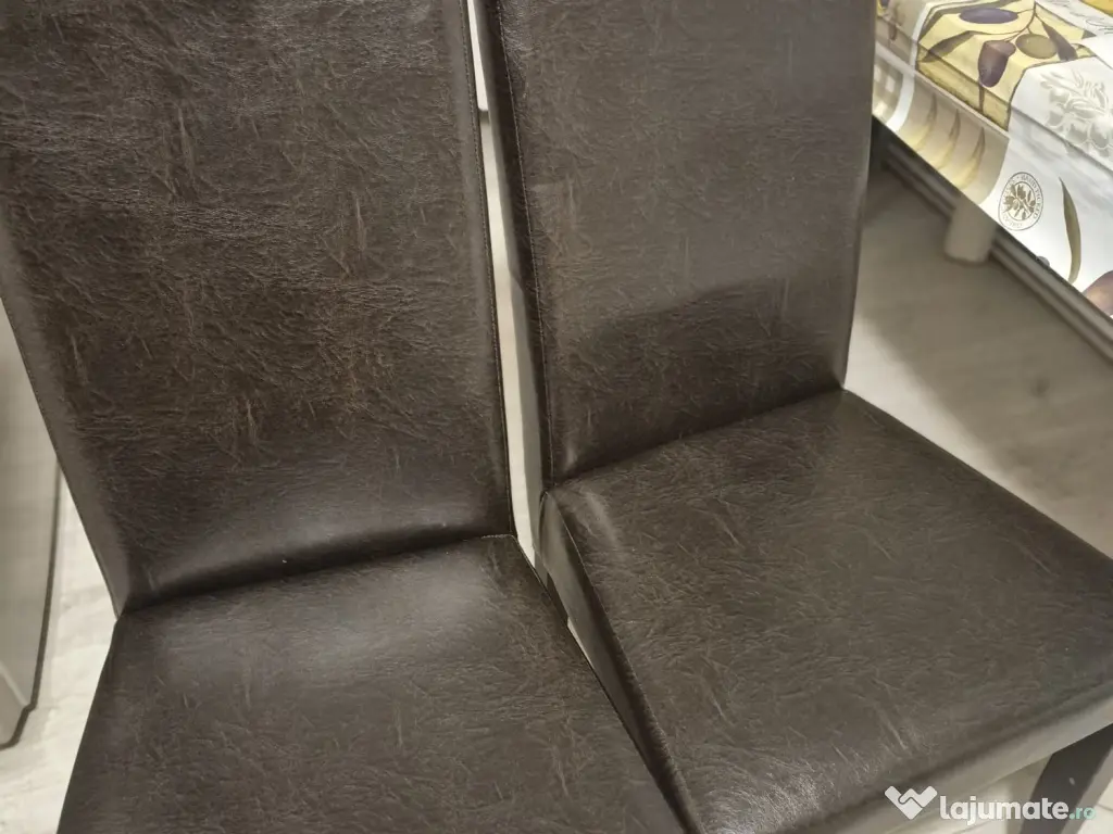 Vând 2 scaune - producție "Casa Rusu". Starea este foarte bună - nu prezintă urme de uzură, deteriorări, zgârieturi. Conform aspectului din imagini, probabil că se asortează - ca formă și culoare - cu multe ambienturi.