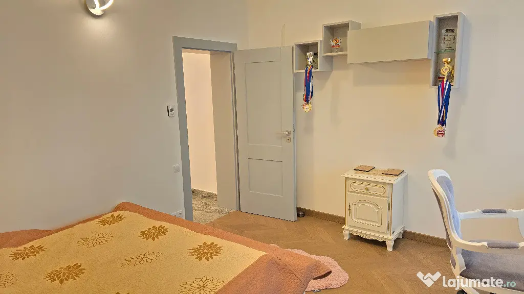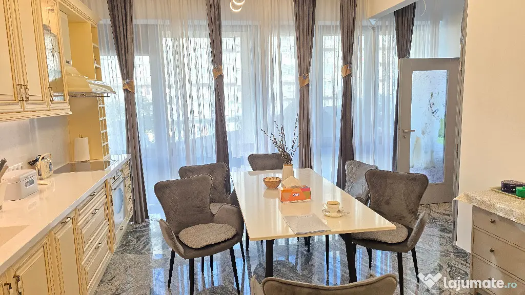 Vand apartament 4 camere deosebit in Deva, zona bld. Decebal (ultracentral), etaj 1, situat pe mijloc, izolat cu vata minerala, suprafata utila 157 mp + spatiu tehnic de 26 mp, casa scarii are intrare separata din strada, sunt doar 5 apartamente pe scara, renovat in toatalitate recent cu: usa la intrare si usi interioare din lemn masiv, tamplarie PVC cu geam termopan tripan de ultima generatie, centrala termica noua, incalzire in pardoseala cu distribuitoare de caldura, instalatia electrica pe cupru, instalatii sanitare noi, videointerfon, pardoseala din granit in camere si marmura in bai. Apartamentul este compus din: living, bucatarie, 3 dormitoare, 2 bai (din care una dubla), 4 dresinguri, 2 holuri centrale si spatiu tehnic de 26 mp utili unde este instalata centrala termica pe gaz. Pret: 335 000 euro neg. Tel: 0724 293226. Mai multe poze, VIDEO si detalii pe www.apartamentedeva.ro sau la Agentia Imobiliara Ovidiu Deva.