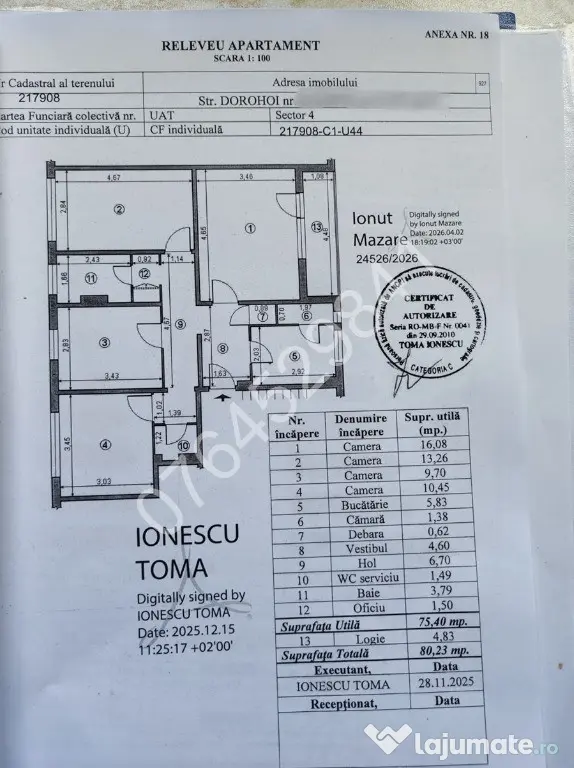 Vând apartament 4 camere zona Berceni-Grand Arena, Str. Dorohoi, decomandat, suprafata utila 75 m2,suprafata construita 90 m2, etaj 3/4 fara lift, vedere mixta.