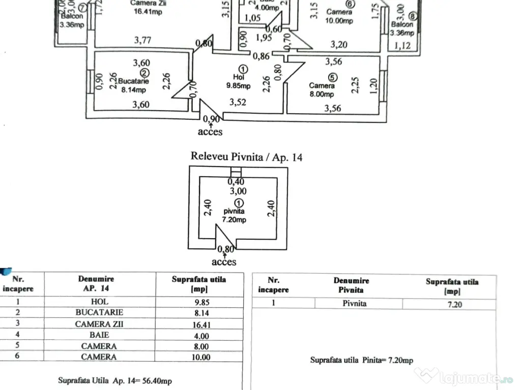 Compartimentarea apartamentului este urmatoarea: