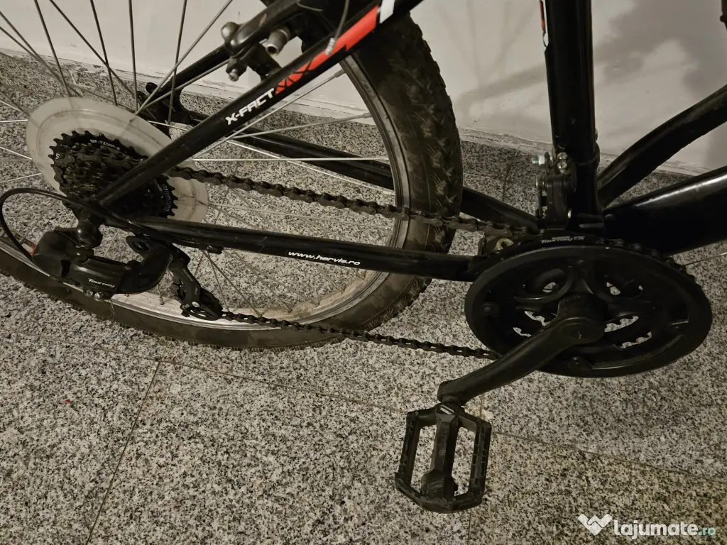 18 viteze, 3 foi si 6 pinioane. Schimbator Shimano Revoshift.