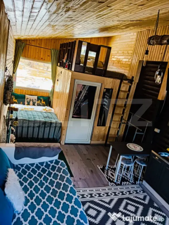• Optimizare Inteligentă a Spațiului: Cabana dispune de o zonă de zi luminoasă, un dormitor confortabil și un spațiu de dormit tip loft (mezanin), adorat de copii sau grupuri de prieteni, oferind o capacitate surprinzătoare de cazare într-un format compact și intim.