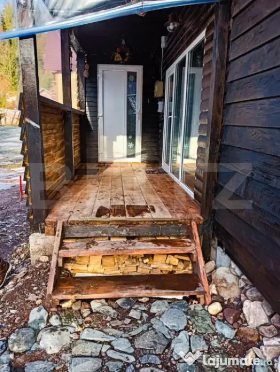 • Structură: Lemn tratat, izolație termică eficientă și tâmplărie PVC cu geam termopan pentru confort maxim iarna.