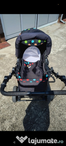 Vând căruț din 3 piese (sport, landou, scoică) și alte accesorii (copertine de umbră scoică, 1 husa de țânțari). Căruțul este reversibil. Se poate monta și cu fața și cu spatele la persoana care îl conduce. Scoica se atașează la căruț cu adaptoare speciale.