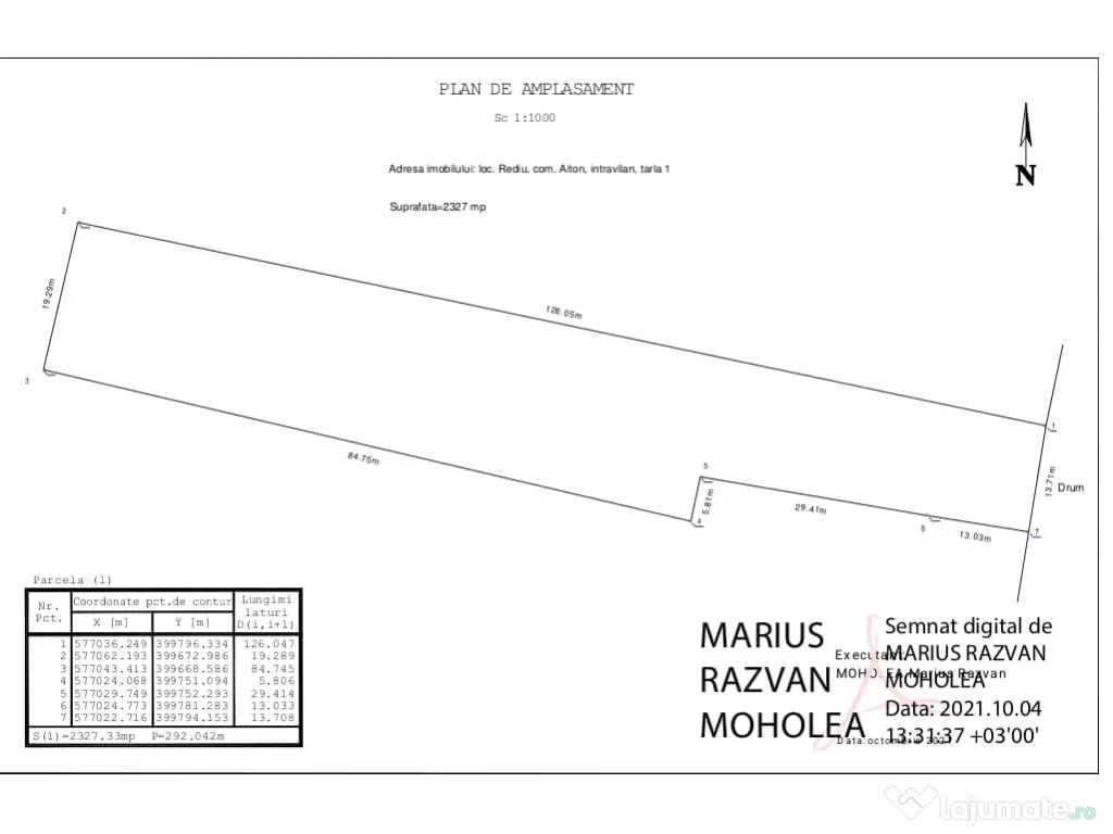 2. Câțiva metri mai sus cu aceste pe un drum pietruit este o altă parcelă intravilană de 2327 m².