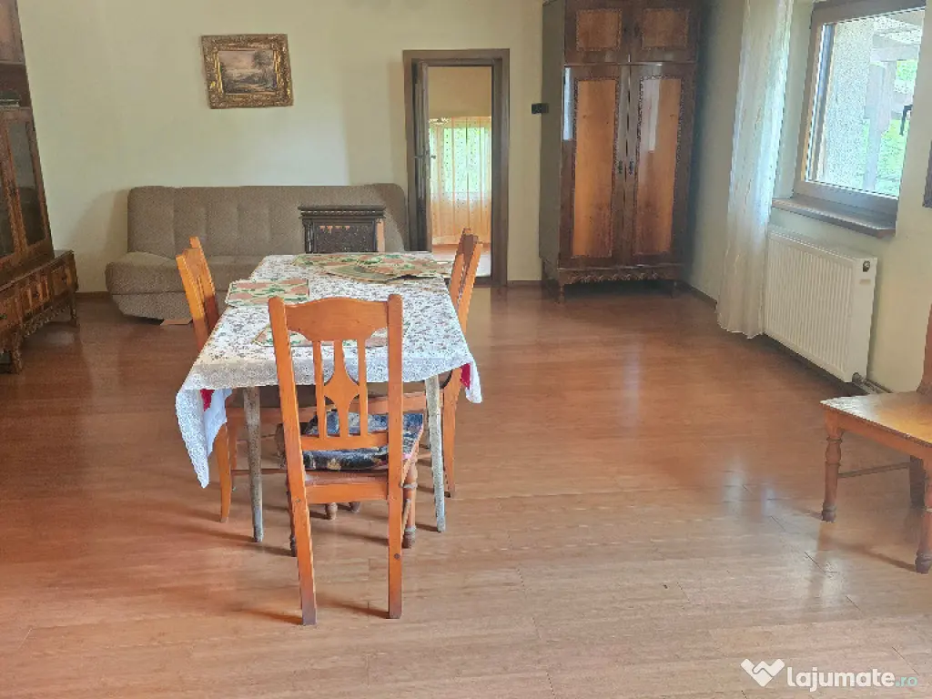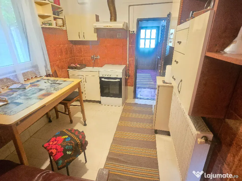 Vand casa in Deva, P+E + Garaj dublu separat cu intrare directa din strada, zona peste linia ferata, deschidere la strada de 20 metri liniari, acces auto in curte cu alee betonata, amprenta la sol de 75 mp, suprafata construita desfasurata de 150 mp + garajul de 40 mp + camera tehnica de 28 mp. Este construita din caramida din anul 1984, izolata exterior, acoperita cu pod si tigla ceramica, incalzire cu centrala termica pe gaz, termopane, parchet, gresie, faianta. Parterul este compus din: hol, baie, bucatarie, dormitor si camara iar la subsol din pivnita. Etajul din: 3 camere, hol si 3 balcoane cu acces din parter sau separat cu scara exterioara. Suprafata totala de teren este de 1505 mp si se compune din 2 loturi. Primul lot de 849 mp si cuprinde casa garajul si anexa (camera tehnica). Al doilea lot din: teren intravilan suprafata totala de 656 mp cu acces din primul lot sau prin spatele lotului, toate utilitatile la primul lot. Pret cu 849 mp de teren: 135 000 euro neg. Pret cu 1505 mp de teren: 150 000 euro negociabil. Pret teren 656 mp: 15 000 euro neg. Tel: 0724 29326. Mai multe poze, VIDEO si detalii pe www.apartamentedeva.ro sau la Agentia Imobiliara Ovidiu Deva.