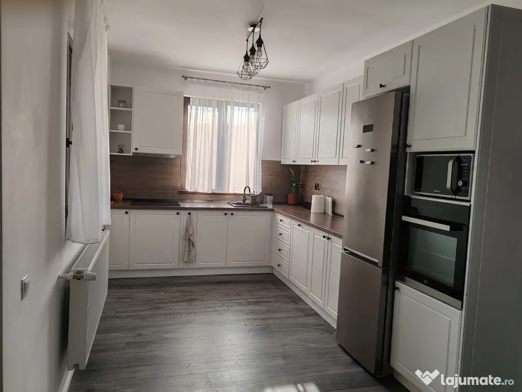 Casa este complet finisata mobilata si utilata, fiind gata de locuit Incalzirea se realizeaza prin centrala pe peleti, cu distributie in calorifere