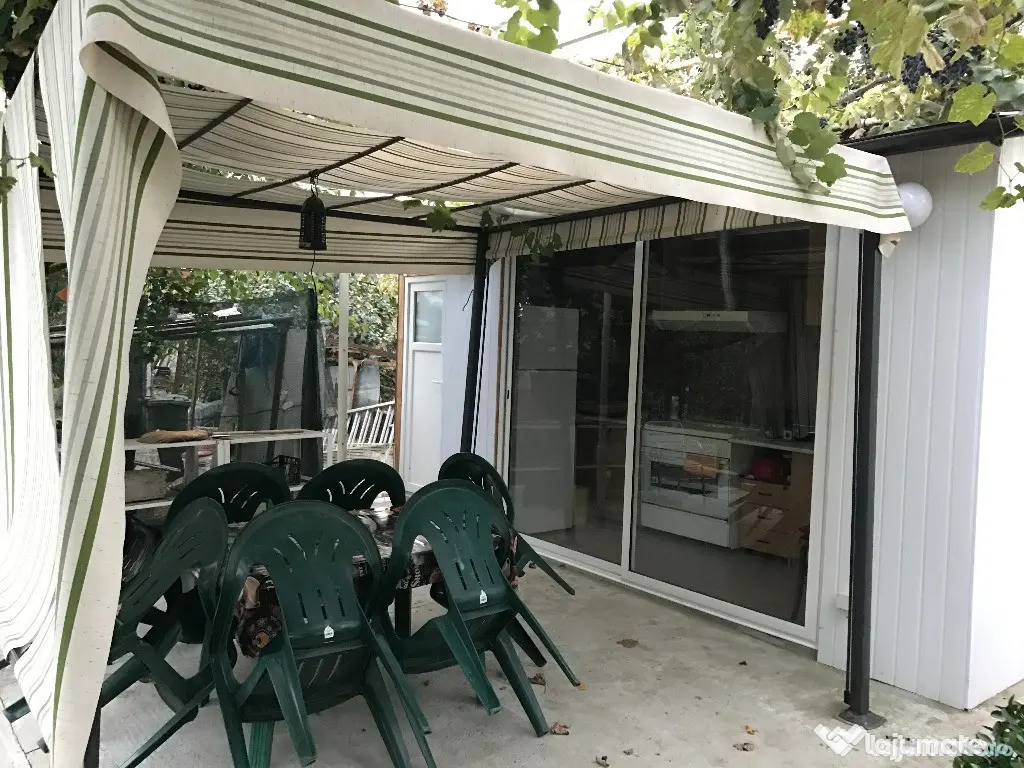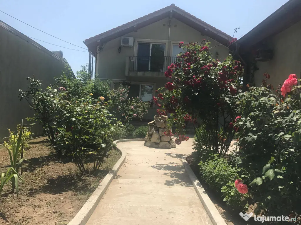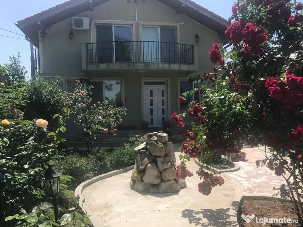 In spatele casei este si o terasa acoperita, cu bucatarie de vara si grup sanitar, curte cu pomi fructiferi si flori.