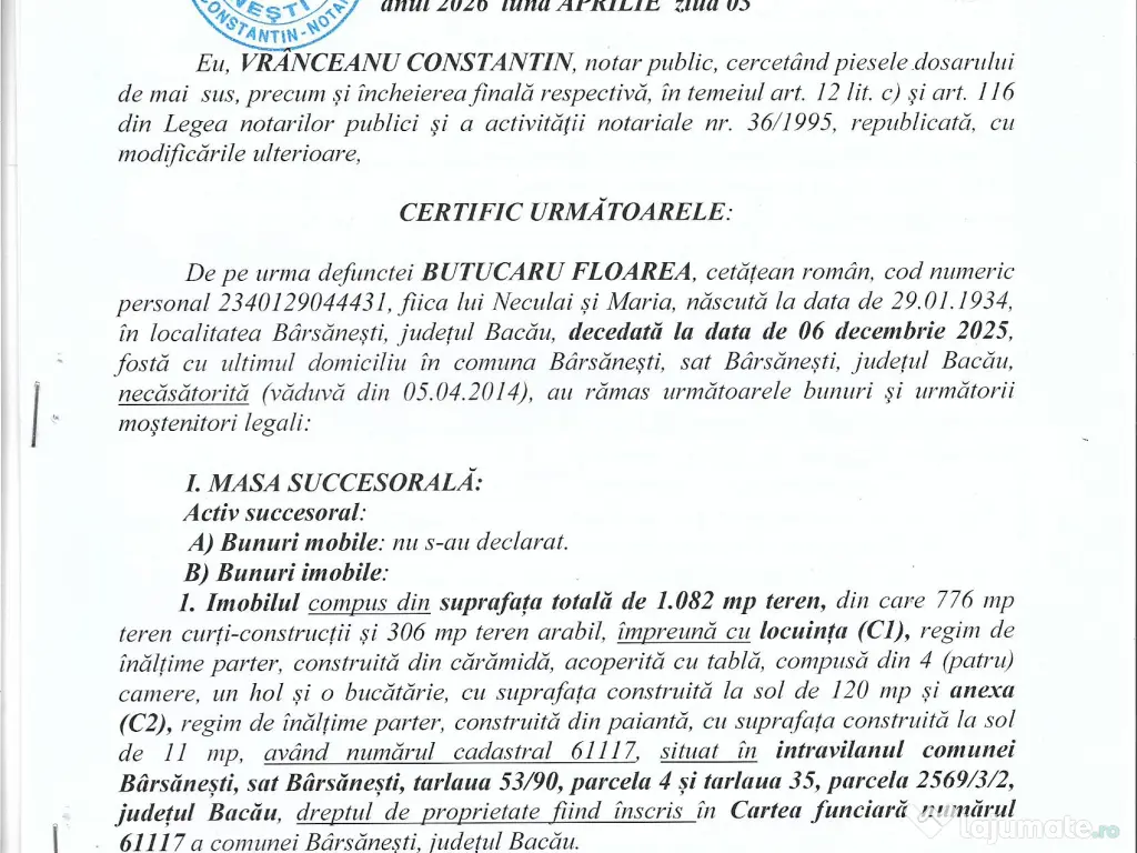 Pret 10 euro/ Mp+ casa.Am dezbaterea facuta si carte funciara la proprietate .