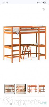 3 Cadre de pat supraetajate din lemn de pin cu birou inclus putin folosite. Dispune de balustrade pentru a impiedica utilizatorul sa se rostogoleasca in timp ce doarme.Biroul este suficient de mare pentru un laptop si carti,creand un spatiu confortabil de studiu pentru copii. Lemn masiv de pin culoare Maro ceruit . Dimensiuni totale 195,5x97,5x175 cm(L x l x i ),dimensiune saltea 90 x 190 , recomandat pentru copii cu varsta peste 6 ani . Pret 1000 lei/ pat .Nu asiguram transport . Mai multe relatii in privat 0743 209605 .