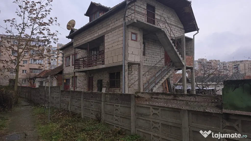 Vand imobil in Deva compusa din 2 corpuri de cladire, zona centrala, suprafata totala de teren 804 mp, acces auto in curte din 2 parti, pretabil pentru locuit sau firma. Primul corp este constructie pe un singur nivel din caramida din anul 1959, suprafata construita aproximativ 80 mp, compus din 2 camere, hol, 2 bai si beci. Incalzirea se face cu centrala termica pe gaz si in prezent functioneaza ca spatiu comercial (Frizerie). Al doilea corp; S+P+E + pod mansardabil, constructie la rosu din BCA si cadre de beton din anul 1994 acoperita cu pod si tigla, suprafata construita aproximativ 300 mp (100 mp/ nivel), toate utilitatile trase in interior. IMOBILUL ESTE PRETABILA PENTRU LOCUIT, PENSIUNE, BIROURI SAU SPATIU COMERCIAL. Pret: 350 000 euro negociabi. Tel: 0724 293226. Mai multe poze, VIDEO si detalii pe www.apartamentedeva.ro sau la Agentia Imobiliara Ovidiu Deva.