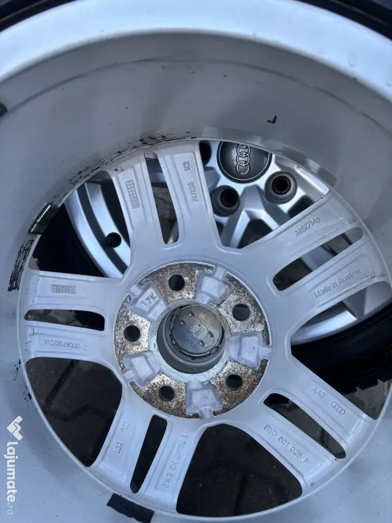 Vând jante aluminiu Audi A 4 cu cauciucuri Danlop M+S aproape noi în stare perfectă preț 500 euro neg!Tel 0742054287 Multumesc.
