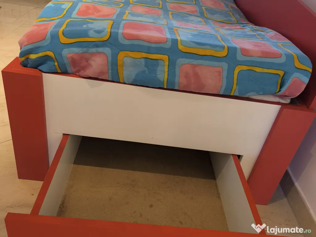 - patul include un sertar încăpător pentru depozitare + saltea