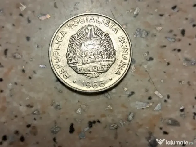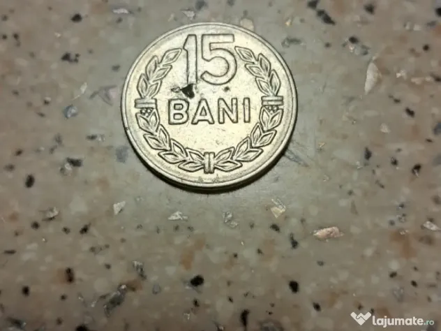 Moneda 15 bani, originala, din 1966. Are un mic punct negru.