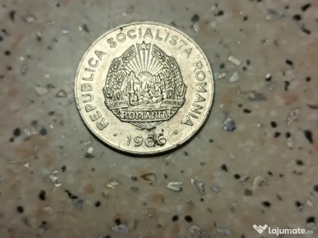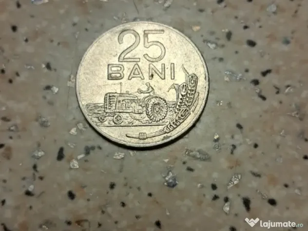 Moneda de 25 bani, originala, emisia din anul 1966. Are un mic punct negru pe spate.