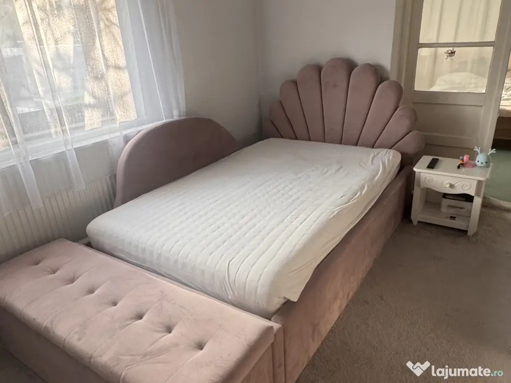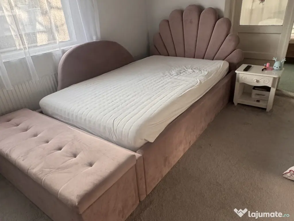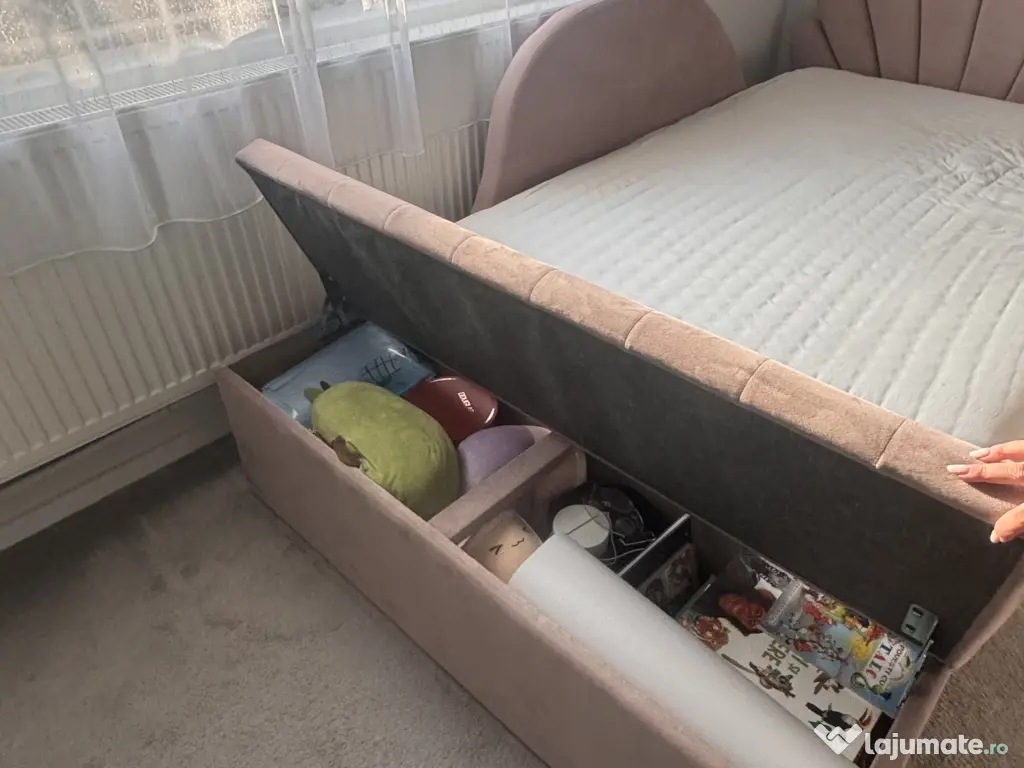 Vand pat de 120cm cu saltea. Patul are si lada de depozitare. Patul este utilizat. Are de schimb si o laterala in cazul in care nu sta la perete sau calorifer. Nu ofer transport si nici demontare