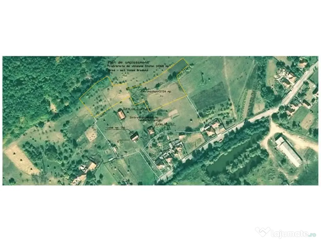 Vând Proprietate la Valea Bradului, Mun. Brad, Jud. Hunedoara, formată din 14368 mp teren și clădiri, după cum urmează: