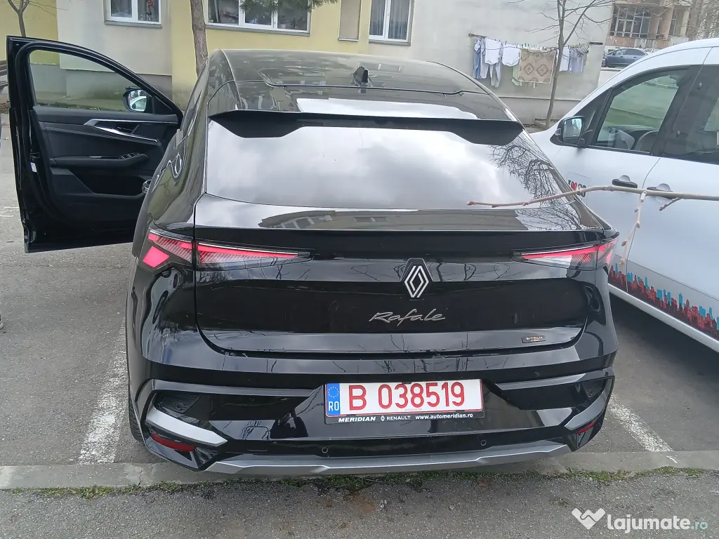 vinde: Renault Rafale ver-e--tech-200-hev-techno, an fabricație 2026motorizare hybrid 1.2, 200 CP, cutie automată, tracțiune fața, disponibilă imediat din stocul propriu.Preț: 37900 EURCuloare: Negru5 uși, caroserie SUV, jante aliaj ușor 20”, fără accidente, rulaj 2200km.Dotări principale:Climatizare automată pe două zone (față/spate)Geamuri electrice față/spateCruise control adaptivSenzori parcare față/spate și cameră marșarierOglinzi reglabile electric, încălzite și rabatabileBluetooh, USB, sistem audio, încărcare wirelessFaruri LED adaptive, lumini de zi LEDRecuperare energie la frânareABS, ESP, Hill Holder, Hill Descent ControlAirbaguri frontale, laterale, cortină față/spate, airbag centralSistem ISOFIXAsistent menținere bandă, asistent schimbare bandăRecunoaștere semne traficSistem pre-coliziune, frânare automată de urgență, monitorizare șoferParbriz și geamuri spate fumuriiTouchscreen navigație*Imagini cu titlu de prezentare*Ofertă valabilă în limita stocului disponibilToate informațiile din acest anunț urmează să fie confirmate împreună cu vânzătorul.Toate informațiile din acest anunț urmează să fie confirmate împreună cu vânzătorul.Pret: BrutCuloare: NegruPrimul proprietar (de nou): DaAnunt adaugat de pe Autovit.ro