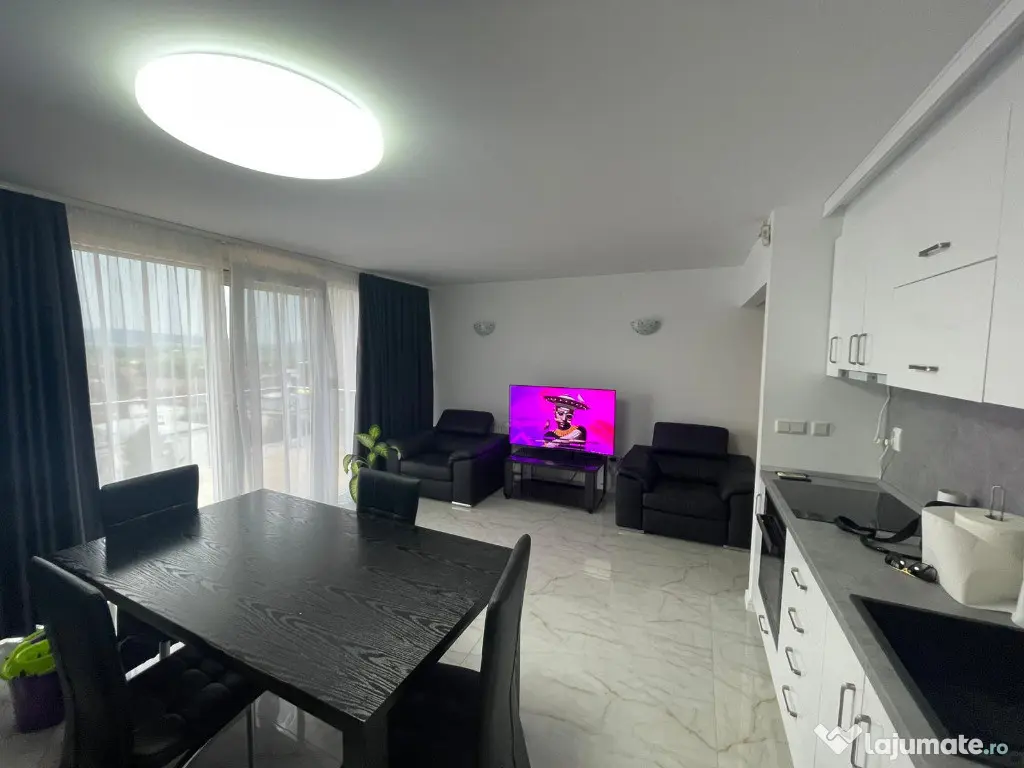 Vand sau inchiriez apartament cu 3 camere, decomandat in Deva zona Mihai Viteazu-Piata Centrala. Situat intr-un imobil rezidential 2010 la etajul 8 din 9 cu suprafata utila de 89 mp, suprafata totala 118mp. Apartamentul a fost renovat complet in Decembrie 2022 cu finisaje de calitate. Este mobilat si utilat complet cu toate electrocasnicele noi si in garantie, tot mobilierul este nou, plaforniera SMART led in toate camerele, 3 unitati de aer conditionat, centrala termica, gresie si faianta, parchet. Compartimentat dupa cum urmeaza: hol central generos, bucatarie open space cu living room, zona de dinning room, terasa cu vedere panoramica de aproximativ 13,7 mp, doua dormitoare mobilate, baie datata complet. Ideal pentru o locuit sau investitie (inchiriere) fiind aproape de toate punctele de interes ale orasului. Pret vanzare: 147 700 euro neg.Tel: 0724 293226. Mai multe detalii la Agentia Imobiliara Ovidiu Deva. Confort: 1 Tip imobil: Bloc de apartamente