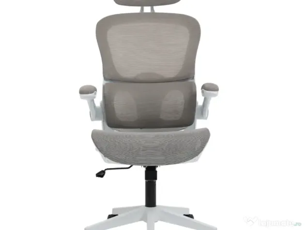Scaun de birou Veltrix White frame Grey, nou, gri, cu rotile și reglaj pe înălțime. Cadrul este solid și stabil, asigurând confort și sprijin în timpul utilizării.