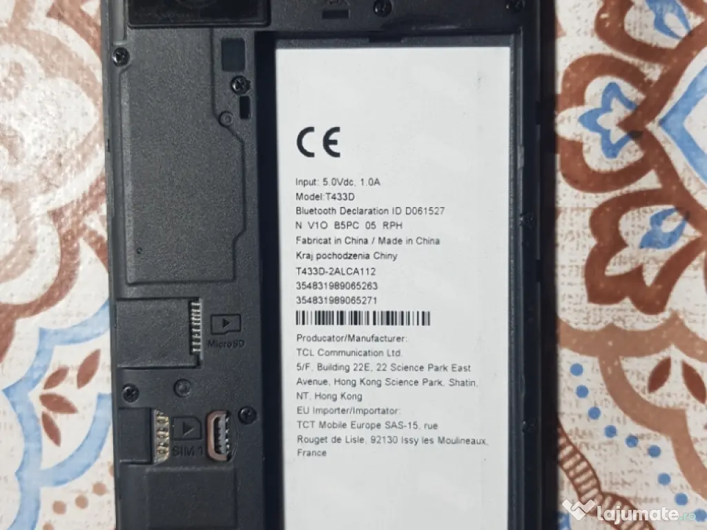 Vand telefon,,TCL"-501-Android-versiunea 14,funcționează impecabil, 2 SIMURI,Baterie 3000 mh,originală, 32 GB memorie internă +microcard 256 GB (extern). PREȚ 150RON. TEL. 0749707198.
