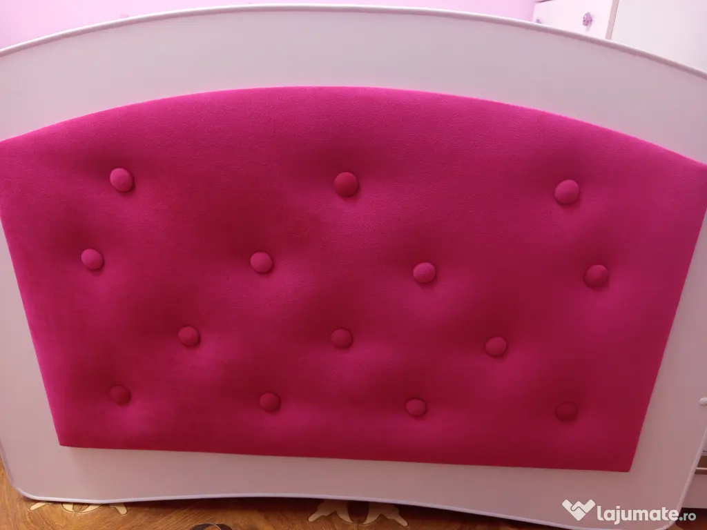 Două paturi pentru fete, în stare folosită, cu design modern și culori vii. Acestea sunt ideale pentru a crea un spațiu de dormit confortabil și atractiv pentru copii.