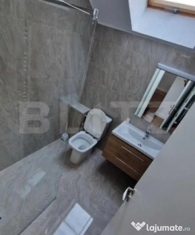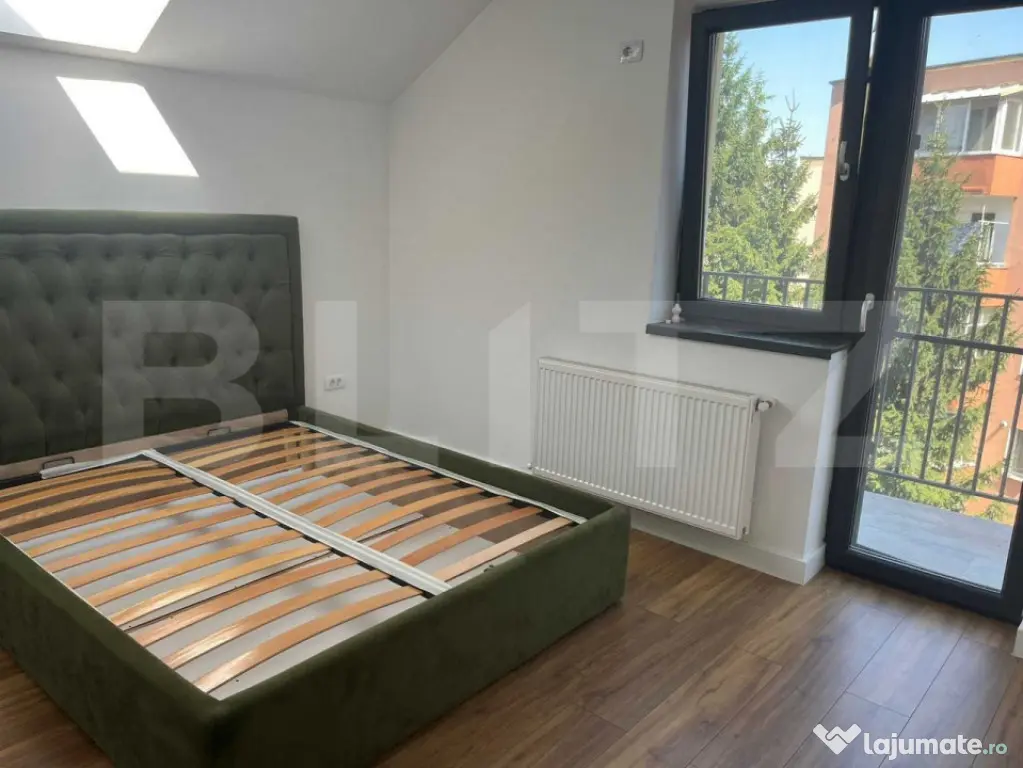 Vanzare apartament penthouse cu 3 camere Brasov, Cartierul Florilor, zona Gemenii, etaj 3/3 sau mansarda din P+2E+M, apartamentul are 90 mp utili si o terasa mare de 150 mp, pe acelasi nivel cu apartamentul, 2 bai, iar constructia s-a finalizat in anul 2021 , zona linistita si civilizata, aproape de bd. Vlahuta. Se vinde cu bucatarie mobilata.